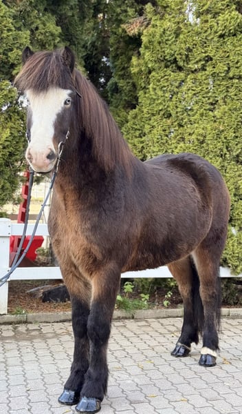 Lukku-Blesi frá Háleggstöðum Wallach, 1,50m groß 🤩 *2020 in Island Viergänger mit endlos Tölt AKU inkl. Röntgen vorhanden✅ Zähne 12/2025 gemacht✅ geimpft, beschlagen, entwurmt✅ V: Bruðgumi frá Háleggstöðum VV: Strákur frá Vatnsleysu M: Skelfing frá Háleggstöðum MV: Nökkvi frá Kjalarlandi 8,29 (Ext 8,09 Re 8,41)‼️ Lukku-Blesi ist ein bombensicherer Wallach, der seinen Reiter trägt wohin er will. Nach der Arbeit im Sofatölt durchs Gelände oder die Seele baumeln lassen bei einem langen Schrittausritt. Am Wochenende auf einen Kurs oder doch mal Turnierluft schnuppern - Blesi ist dabei! Viergängig geritten, zeigt er guten Schritt, guten Trab, schön gesprungenen Galopp und stets taktklaren Tölt, den man mühelos reiten kann. Auch ein töltunerfahrener Reiter kann diesen problemlos abrufen und genießen. 😌 Er zählt zur Kategorie „BOMBPROOF“ und lässt sich durch fast nichts aus der Ruhe bringen. Bevor er losrennen würde, bleibt er eher stehen und schaut sich ein „unbekanntes Objekt“ lieber aus der Nähe an - schließlich könnte es ja essbar sein 😅 Ein sechsjähriger, riesengroßer, bildschöner Wallach, dem wir hier seinen Lebensplatz suchen dürfen! Ein „Wow, ist der schön“ von den anderen Reitern im Stall, ist für diesen besonderen Kerl garantiert! Wer den schönen Wallach kennenlernen und probieren möchte, kann dies gerne nach Absprache bei uns in A -5221 Lochen am See tun.