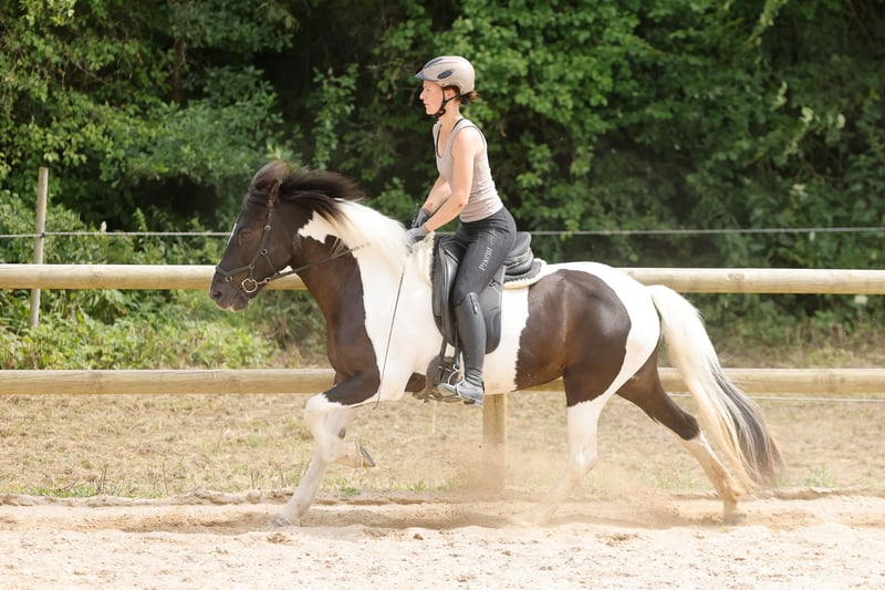Sæla is a mare born in 2009, a daughter of Alfur frá Selfossi, who leaves almost no wish unfulfilled. She is tall and solid (about 14.1 hh) with a stylish roan tobiano coat. She was imported eight years ago and has been in our possession for six years. Since then, she has never been ill, is free of eczema, and is fed hay. Sæla has five evenly good gaits, although we mainly ride her in four. Last year, she impressively carried me through the Trainer C test and scored well in each section. She is familiar with and appreciates dressage work just as much as long hacks or training on the oval. She particularly enjoys trail tasks. She hauls a trailer without issues and is well-behaved with the veterinarian and farrier. Last year, she competed successfully with solid results and individual scores up to 6.5 in V5, T7, and T3. She lives in an open stable with a herd of Icelandic mares and is very social, though she tends to be dominant. In 2022, she had a foal. She was covered naturally by hand and accepted the first attempt without any problems, weaning her foal on her own. Due to her lively nature and character, she is not suitable for beginners or nervous riders. We are looking for someone who appreciates her willingness to work and who puts her first. Small competitions and clinics are a lot of fun with her, and she can also earn a few riding badges. Sæla is currently in training and can be visited anytime in Hamm, 59073. Price is secondary! The sale is with a heavy heart because she does not receive the attention she deserves due to our lack of time. We wish for this special horse to find a loving forever home where she can grow old happily.