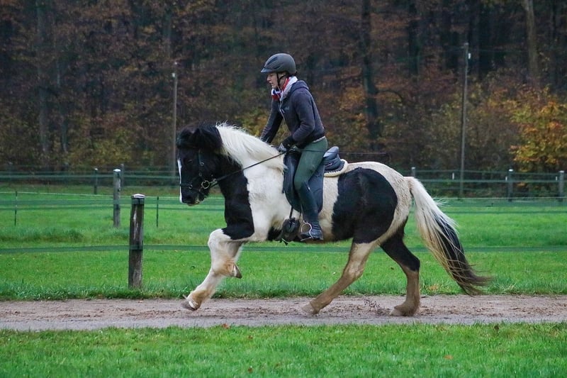 Sæla ist eine 2009 geborene Alfur frá Selfossi Tochter, die fast keine Wünsche offen lässt. Sie ist groß und stabil (1,45m) und in schicker Rappschecken-Optik. Sie ist vor 8 Jahren importiert worden und seit 6 Jahren in unserem Besitz. Seither war sie nie krank, ist ekzemfrei und wird mit Heu gefüttert. Sæla verfügt über 5 gleichmäßig gute Gänge, wobei wir sie hauptsächlich viergängig geritten haben. Im letzten Jahr hat sie mich mit Bravour durch den Trainer C getragen und konnte in jeder Teilprüfung punkten. Sie kennt und schätzt Dressurarbeit genauso wie lange Ausritte oder Training auf der Ovalbahn. Sehr große Freude machen ihr Trailaufgaben. Sie fährt problemlos Anhänger und ist brav bei Tierarzt und Hufschmied. Im letzten Jahr ist sie mit soliden Leistungen und Einzelnoten bis 6,5 in V5, T7 und T3 gestartet. Sie lebt im Offenstall in einer Isländer-Stutenherde und ist sehr verträglich aber eher ranghoch. 2022 hatte sie ein Fohlen. Sie wurde im Natursprung an der Hand gedeckt und hat problemlos beim ersten Versuch aufgenommen und alleine abgefohlt. Sie ist aufgrund ihrer Lauffreude und ihres Charakters nicht für Anfänger oder ängstliche Reiter geeignet. Wir wünschen uns für Sæla eine Person, die ihren Arbeitswillen zu schätzen weiß und bei der sie an erster Stelle steht. Kleine Turniere und Kurse machen mit ihr viel Spaß und ebenso kann mit ihr auch das ein oder andere Abzeichen absolvieren. Sæla ist aktuell im Training und kann jederzeit in 59073 Hamm kennen gelernt werden. Es gilt Platz vor Preis! Der Verkauf erfolgt absolut schweren Herzens weil sie bei uns aus Zeitmangel nicht die ihr zustehende Aufmerksamkeit bekommt. Wir wünschen uns für dieses besondere Pferd ein liebevolles für-immer-Zuhause, in dem sie alt werden kann