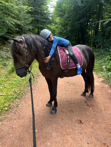 For personal and financial reasons, I am seeking a new, suitable home for my Icelandic mare. She has been a part of my life for 11 years, which is why finding her a really good place is especially important to me. This lovely mare, with plenty of feather, impresses not only visually but also through her affectionate character. Her rather petite size makes her particularly suitable for lighter or less tall riders. She is a motivated, friendly horse with a moderate temperament that simply brings joy and enjoys going forward. Her willingness to work and positive attitude towards training are as evident as her pleasant riding qualities. As a four-gaited horse, she has a secure, beautiful trot. In recent years, her focus has mainly been on relaxed rides in the countryside, both alone and in groups. She calmly accepts accompanying dogs, which is no problem. She is also familiar with work on the riding arena. Currently, due to lack of time, training has been limited, but she remains motivated and eager to be engaged. She has already been ridden by a child, which she handled well. Due to her lively nature, I see her less suitable for absolute beginners, but experienced leisure riders will find her to be a wonderful, fun, and reliable partner. In everyday handling, she is uncomplicated, easy to shoe, and easy to load. She currently wears four shoes. Dental check-ups and vaccinations are regularly and annually maintained. Her current housing is in an open stable within a herd of mares, with additional turnout in summer. I would like this to remain her future arrangement. She has a mild summer eczema, which can be well managed with an appropriate blanket. She is currently fed haylage, which she tolerates without any issues.