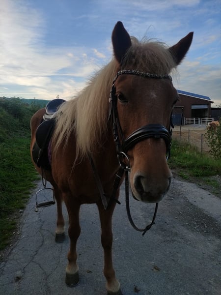 Sometimes, the heart chooses a new path... And so, an absolute sweetheart of a horse is for sale due to a step into competitive riding. A brief overview: - Name: Hyra❤️ (mare) - Height: approx. 13.5 hh (137 cm) - Date of Birth: June 7, 2008 (in top condition) - Looking for her forever home - Breed: Icelandic - Leisure horse - Low-level rider - Not a weight carrier, max. 70 kg - Small, sensitive soul💕 - No bucking, no rearing - She is familiar with dogs, tractors, road traffic, farrier, and trailer loading; she is very well-behaved in all situations. She is a bit cautious when loading into the trailer but does not rear or pull back. She stands perfectly still during transport. Personality🍀 Hyra, affectionately called "Mäuschen," is an absolute reliable partner. Once she trusts her human, she will stand by your side through thick and thin! (Provided her handler gives her confidence; otherwise, she can become unsure.) She loves going on rides and walks, remaining manageable even if she gets startled. She handles well alone and in groups and listens carefully to her rider. She also enjoys riding in the arena and on the riding hall, though she seems to prefer hacking out, where she quickly shows signs of boredom. Hyra always wants to do her best, so she needs subtle but consistent aids. Gaits✨ Hyra is a five-gaited horse (though I have only ridden her in four gaits). Her walk is steady but could be more expressive. Her trot is still a work in progress, as she has only recently learned to distinguish between trot and tölt, so her gait is not yet perfectly fluid. I cannot say much about her tölt, as I haven't ridden her in it often. Being a five-gaited Icelandic, she can only gallop uphill in the terrain. Overall, I haven't worked much on her gaits under saddle, as I mostly did ground work with her, which she enjoys and is very eager to learn. Health🐴 Hyra has never been ill or lame during our time together. She is regularly vaccinated and dewormed. She has a mild cough, but this has almost disappeared since moving to the open stable, and with regular exercise, she no longer coughs. She will be thoroughly checked before sale. An ultrasound is no problem.😊 What we wish for Hyra🍀❤️ We are looking for a loving person who will give her the attention and affection she deserves. Hyra is a sensitive little mare, so we hope her new owner is empathetic and respects her boundaries. Therefore, she should only go to an experienced horse person. Additionally, we prefer someone who values quality time with her—such as groundwork and hacking—more than her gait. She loves those activities above all else❤️ We will only rehome her to an open stable with other Icelandic friends, as she is currently happy there. Hyra needs a consistent handler, as changing riders or small children cause her stress! No riding school or lesson programs, please!!! Hyra is sold with full tack: saddle, cooler, grooming supplies, tack box, etc. P.S.: She is not currently in training, so trial riding is not possible. Videos can be sent upon serious interest. Hyra is not a rescue horse, and we only wish the best home for her❤️ Dealers, breeding farms, and riding schools are not preferred.