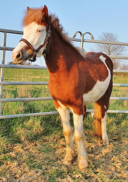 Rúbý - junge Fuchshelmscheckstute (AAeeSW1/SW1) aus 2023 - Nachwuchspferd für Freizeit und mehr... Rúbý ist bei mir geboren, seit Geburt gesund, Ekzemfrei, entwurmt und Hufe gepflegt. Sie ist geimpft und Hufpflege- wie auch Verladefromm. Kennt es geputzt zu werden und steht dabei brav und gechillt, lässt sich stehts brav Halftern und auch das Führen klappt in der Regel gut. Aktuell ist sie wieder in einer etwas komischen Wachstumsphase und wirkt teils etwas unharmonisch. Dadurch gehe ich davon aus das sie noch mehr an Größe und Fundament zulegen sollte. Durch ihr eher kräftigeres Grundfundament sollte sie später Kinder bis normalgewichtige Erwachsene gut abdecken können. Eine absolut freundliche und menschenbezogene Stute mit großer Neugierde. Auf der Weide ist sie immer eine der ersten die zu einem kommen und auch sonst stehts überall mit der Nase mit dabei. Vom Temperament eher ausgeglichen ist sie stehts Kopfklar mit viel Freude am Lauffen. Aktuell bevorzugt sie ihre sicher vorhandenen Grundgänge und zeigt aber auch immer wieder mindestens Tölt im Übergang oder je nach Situation auch Streckenweise den Tölt. Eine Passveranlagung kann aktuell noch nicht ausgeschlossen werden. Ich sehe sie später mit passendem Beritt und Ausbildung als gehobenes Freizeitpferd für klein und groß mit der Option auf kleinen Sport und Zucht. Mit ihren fast 3 Jahren ist auch die Wartezeit bis man sie anarbeiten kann nicht mehr ganz so lange hin. Aufgrund ihres aktuellen Wachstumsschubs würde ich von einer Überlegung zum Belegen in diesem Jahr eher absehen. Als potentielle Zuchtstute wäre sie zusätzlich ein Farbgarant da ihre Nachzucht immer nur Braun oder Fuchs basiert sein kann und stehts zu 100 % ein Splash-Gen erbt. Gerne kann sie im Nordsaarland angeschaut werden. Die Fotos sind aktuell, ein Video ist nicht vorhanden und kann derzeit auch nicht umgesetzt werden.