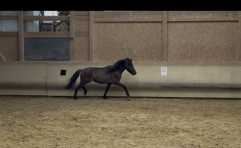 FEIF-ID DE2021273331 Geschlecht Stute Farbe Rappe Abstammung V: Kappi fra Holtsmula M: Elfa fra Torfastödum Beschreibung Karma von Möllenbronn ist eine 4 jährige deutlich fünfgängig veranlagte eher kleine Stute. Ihre Mutter ist eine Vidalin frá Hamraholi Tochter. Ihr Vater ist ein 145cm großer sehr talentierter, viergängig veranlagter Aron Sohn. Karma selbst zeigt freilaufend viel taktklaren Tölt bei gutem Fluss und schönem Raumgriff. Karma wird aktuell schonend angeritten und kennt bereits den Sattel, Trense und den Reiter. Sie wird zurzeit schon frei in der Halle im Tölt, Schritt und Galopp geritten. Karma benötigt Heulage, Heu verträgt sie nicht. Daher wird sie auch günstig abgegeben.