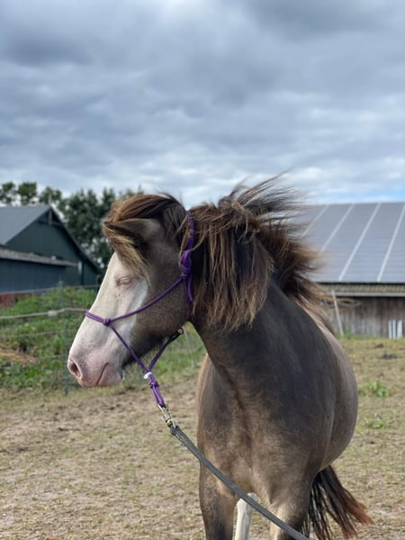 Eydes vom Terlindenhof, 5-year-old young mare, she is currently being backed. Very people-oriented, she is expected to have a 4-gaited disposition. Eydes is a very calm young mare who wants to please her person. She will be very easy to ride, goes out into the terrain very relaxed, and is suitable for leisure and breeding. Her special coat color is particularly noteworthy, as it is very rare, especially among the Helmchecks. Anyone who would like to get to know Eydes can visit her at any time or inquire further via PM. Attention! With a credit check, we also offer installment payments with a down payment.