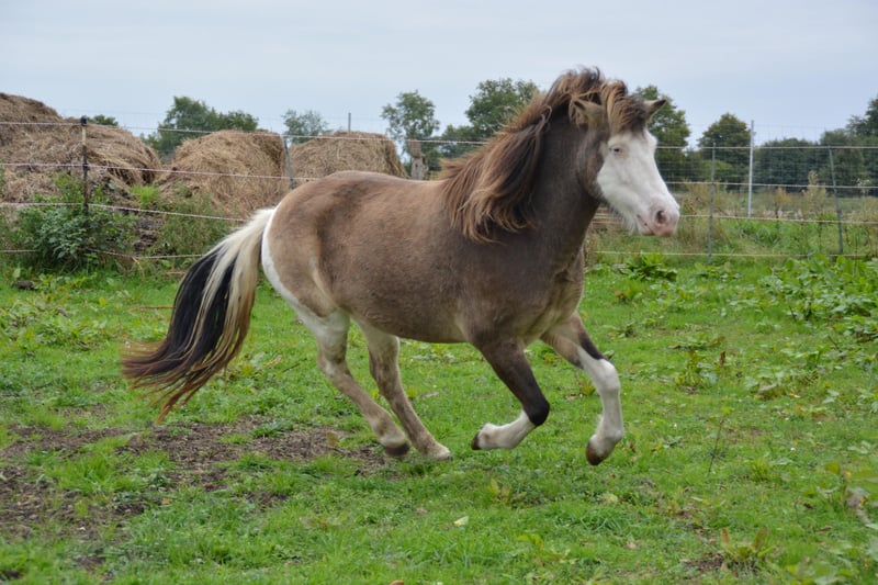 Eydes vom Terlindenhof, jument de 5 ans, elle est actuellement en cours de débourrage. Très attachée aux humains, elle est probablement dotée d'une aptitude à être 4 gaits. Eydes est une jeune jument très calme, qui souhaite plaire à son cavalier. Elle sera très facile à monter, sort en extérieur de manière détendue et convient pour les loisirs et l'élevage. Il convient de souligner sa robe particulière, qui est très rare, notamment chez les chevaux à taches de casque. Quiconque souhaite faire la connaissance d'Eydes peut venir la visiter à tout moment ou obtenir plus d'informations par message privé. Attention ! Lors de l'évaluation de la solvabilité, nous proposons également un paiement échelonné avec un acompte.