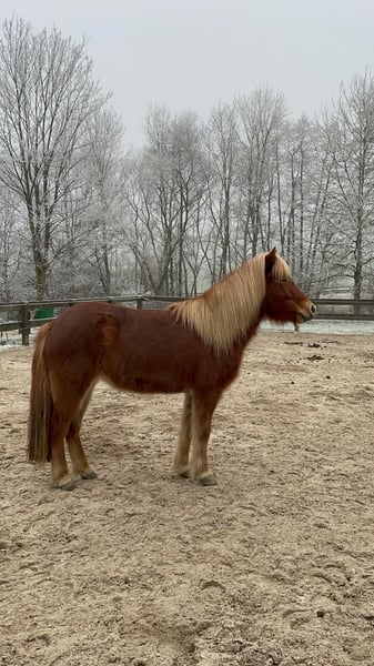 Verkaufe Islandpferd Zum Verkauf steht eine wunderschöne Islandpferde-Stute, 5-Gängerin, geboren im Jahr 2019. Diese elegante Fuchsstute hat sehr gute Grundgangarten und eine sehr gute Abstammung. Ihr Vater ist der berühmte Svadi frá Hólum. Sie war 2024 im Beritt und wurde von uns im Gelände und in der Halle sowie auf dem Reitplatz geritten. Sie ist absolut unerschrocken und verladefromm. Sie wird aktuell nicht geritten, und ist daher my nicht im Training. Sie eignet sich nur für erfahrene Reiter, die Interesse haben sie weiter auszubilden. Wir verkaufen sie aus Zeitmangel. Sie ist regelmäßig geimpft und entwurmt. Bei Interesse oder für weitere Informationen stehe ich Ihnen gerne zur Verfügung. Besichtigung und Probereiten nach Vereinbarung möglich.