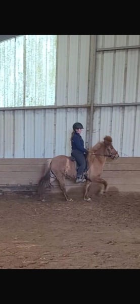 Lilja vom Grenzland *2019 Zum Verkauf steht aus Zeitmangel meine zuckersüße Lilja. Lilja ist 2019 geboren und ist seit dem in meinem Besitz, da ich sie mir selbst gezüchtet habe. Sie ist ca 1.36m groß und hat einen sehr stabilen Körperbau ohne dabei schwerfällig zu sein. Im Umgang ist sie ein absoluter Schatz und macht jeden Spaß mit. Sie liebt es neue Sachen zu entdecken und zu lernen. Lilja ist ein schlaues und wissbegieriges Pferd ohne dabei blöde Eigenschaften zu entwickeln. Sie hat 4 schön getrennte Gänge wobei der Tölt noch in Ausbildung ist und bisher bis ins mittlere Tempo geritten werden kann. Bei weiterer Ausbildung kann man mit ihr sicherlich auch das ein oder andere Turnier reiten. Mit Lilja kann man alleine aber auch in der Gruppe im Gelände ausreiten. Sie hat von Anfang an gelernt, dass man anderen Pferden nicht hinterher rennt und ist deshalb immer regulierbar. Ich habe in den vergangenen Wochen mit ihr an einem Trailreiten Kurs teilgenommen und in dieser Art der Arbeit geht sie vollkommen auf. Wippe, Flattervorhang, Garrocha, Labyrinth, Fußballspielen, Besen Polo etc. alles kein Problem für sie. Deshalb wäre sie auch ein Ideals Pferd für Reitabzeichen sowie den Trainer C. Lilja kann mit Gebiss oder auch Gebisslos geritten werden. Aufgrund ihres Alters ist sie nicht für Anfänger geeignet. Mit weiterer Ausbildung kann ich sie mir auch sehr gut für ein Mutter-Kind-Gespann vorstellen. Lilja verkörpert das was man sich unter einem Luxus-Freizeitpferd vorstellt. Videos gerne auf Anfrage :) Teile der Ausstattung können mitgenommen werden. (Preis steigt mit weiterer Ausbildung)