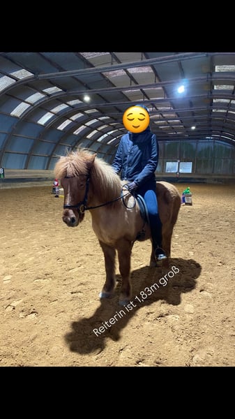 Lilja vom Grenzland *2019 Zum Verkauf steht aus Zeitmangel meine zuckersüße Lilja. Lilja ist 2019 geboren und ist seit dem in meinem Besitz, da ich sie mir selbst gezüchtet habe. Sie ist ca 1.36m groß und hat einen sehr stabilen Körperbau ohne dabei schwerfällig zu sein. Ihre Reitbeteiligung mit 1,83m deckt sie ohne Probleme ab. Im Umgang ist sie ein absoluter Schatz und macht jeden Spaß mit. Sie liebt es neue Sachen zu entdecken und zu lernen. Lilja ist ein schlaues und wissbegieriges Pferd ohne dabei blöde Eigenschaften zu entwickeln. Sie hat 4 schön getrennte Gänge wobei der Tölt noch in Ausbildung ist und bisher bis ins mittlere Tempo geritten werden kann. Bei weiterer Ausbildung kann man mit ihr sicherlich auch das ein oder andere Turnier reiten. Mit Lilja kann man alleine aber auch in der Gruppe im Gelände ausreiten. Sie hat von Anfang an gelernt, dass man anderen Pferden nicht hinterher rennt und ist deshalb immer regulierbar. Ich habe in den vergangenen Wochen mit ihr an einem Trailreiten Kurs teilgenommen und in dieser Art der Arbeit geht sie vollkommen auf. Wippe, Flattervorhang, Garrocha, Labyrinth, Fußballspielen, Besen Polo etc. alles kein Problem für sie. Deshalb wäre sie auch ein Ideals Pferd für Reitabzeichen sowie den Trainer C. Lilja kann mit Gebiss oder auch Gebisslos geritten werden. Aufgrund ihres Alters ist sie nicht für Anfänger geeignet. Mit weiterer Ausbildung kann ich sie mir auch sehr gut für ein Mutter-Kind-Gespann vorstellen. Lilja verkörpert das was man sich unter einem Luxus-Freizeitpferd vorstellt. Videos gerne auf Anfrage :) Teile der Ausstattung können mitgenommen werden. (Preis steigt mit weiterer Ausbildung)