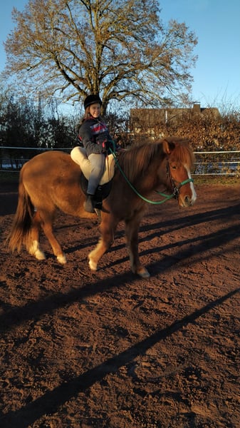 La nostra cara Fenja cerca urgentemente una nuova casa a cinque stelle in Germania. Purtroppo, ci siamo sottovalutati con il nostro trasferimento in Spagna e, dopo tre anni fantastici, siamo ora costretti a vendere tutto. Anche la nostra finca, un sogno per ogni cavallo, è in vendita. Fenja l'ho presa quando aveva 2 anni, mentre ancora vivevamo in Germania. L'ho abituata presto a tutto, ma ho iniziato a montarla solo a 4 anni, sempre in modo sporadico. Qui in Spagna, però, non avevo più il tempo. Poiché Fenja è un pony molto tranquillo, non è mai stato un problema montarla di tanto in tanto. Dal carattere, non è un Icelandic nervoso. Sua madre ha sangue Quarter. Per questo, Fenja è piuttosto robusta e sostiene bene anche me, da adulta, con circa 75 kg. Grazie alla sua schiena larga, è molto comoda, e cavalcarla senza sella è un vero sogno. Vorrei cederla con un sella in pelle Deuber adatta e altri accessori. Probabilmente è una trottatrice di quattro andature. Una prova può essere fatta presso Christiane Engels a Oberzissen. Lì dovrebbe arrivare anche con il trasporto dalla Spagna. Stiamo ancora definendo i dettagli.