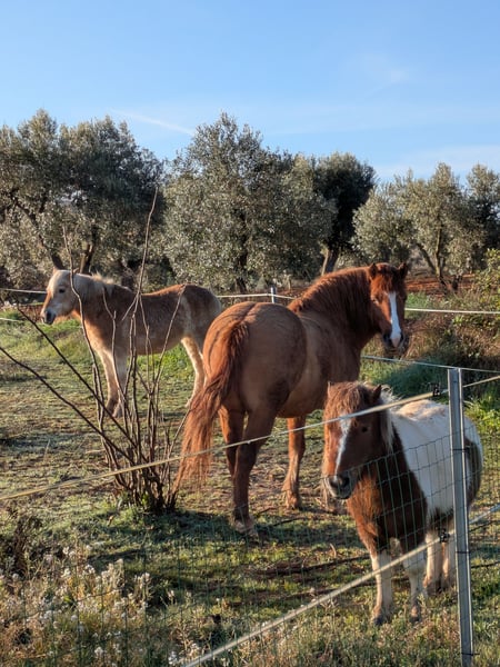 Our beloved Fenja is urgently seeking a new five-star home in Germany. Unfortunately, we overestimated our move to Spain and, after three wonderful years, are now forced to sell everything. Our finca, which is a dream for every horse, is also for sale. I acquired Fenja as a two-year-old when we still lived in Germany. I introduced her to various experiences early on, but I only started riding her at the age of four, and only sporadically. Here in Spain, I simply lacked the time. Since Fenja is a very laid-back pony, it was never an issue to ride her occasionally. She is not a hot-tempered Icelandic horse by nature. Her mother has Quarter Horse lineage, and her father is a licensed Icelandic stallion, visible in the last photo. That’s why Fenja is quite stocky and comfortably carries me as an adult weighing around 75 kg. Thanks to her broad back, she is very comfortable to ride, and riding without a saddle is a dream. I would be happy to sell her with a suitable Deuber leather tree saddle and additional equipment. She is probably a four-gaited horse; a lunging session can be arranged with Christiane Engels in Oberzissen. She will likely be transported from Spain to there as well. Transport costs are approximately €1,500. I have already factored this into the price. If Fenja comes to Oberzissen for training, the price will increase accordingly.