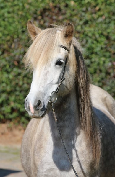 Gloria is een prachtige en getalenteerde schimmel ruin. Ze is een echte eye-catcher en valt op door haar mooie ogen en haar prachtige manen. Gloria werd in 2017 geboren in Duitsland en heeft geen eczeem. Ze beschikt over een goede basisopleiding; vanwege persoonlijke redenen is ze niet veel gereden. Ze is goed berijdbaar op dat niveau; nog niet zo ver als een gemiddeld 7-jarig paard. Ze heeft mooie bewegingen met veel taktvolle tölt en goede basisgangen. Gloria is open en mensgericht. Onder het zadel is ze lief, maar moet nog veel leren. Ze is eerlijk en zou nooit kwaad willen doen! Gloria heeft een gemiddeld temperament; ze is positief in haar houding, wordt nooit te snel en blijft bij haar ruiter. Wat afstamming betreft, is Gloria van topkwaliteit! Haar vader is de bekende Ómur frá Kvistum, een zeer indrukwekkende hengst, waar onder andere de tophengst Konsert frá Hofi – 8,72 – vandaan komt. Haar moeder Carmen is een dochter van de beroemde schimmelhengst Kjarni frá Þjóðólfshaga 1, die onder andere de vader is van Bragi frá Austurkoti. Bragi werd bekend door Andreas Trappe en was succesvol op vele wedstrijden. Deze informatie is vooral interessant voor fokkers, maar het geeft ook mooi inzicht in haar interessante bloedlijn. Gloria heeft al een prachtig veulen gehad. Wij zoeken voor Gloria iemand die plezier heeft in het verder opleiden van dit mooie en talentvolle paard. Met dit paard is het de moeite waard om wat tijd te investeren! Wij zien Gloria als een absoluut droompaard voor de toekomst! Schofthoogte: 1,41 m Vraagprijs: € 11.000,- VB Video en meer informatie graag via WhatsApp: Hjerke 0049-151-40709772
