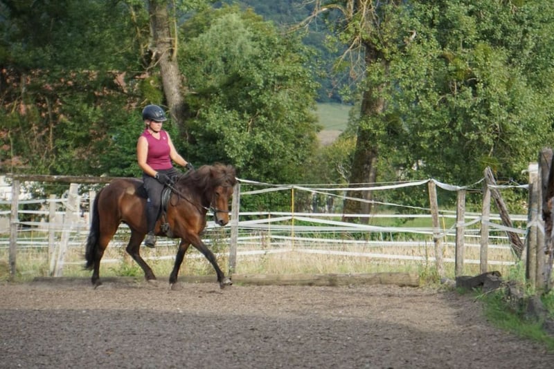 Du suchst einen treuen Begleiter fürs Leben, mit dem du durch Dick und Dünn gehen kannst aber es dennoch nie langweilig wird, ein Pferd, welches du selber weiter nach deinen Wünschen weiterfördern kannst? Hast aber nicht das notwendige Kleingeld, um dir ein entsprechendes Pferd zu kaufen? Dann ist Hekla genau die Richtige für dich! Hekla ist eine bildhübsche, feine Isländer Stute, die mit ihrem Gesamtpaket überzeugt. Sie hat einen super lieben Charakter, ist sehr höflich im Umgang, unerschrocken, fein zu reiten und will dem Menschen in allem gefallen. Ein Pferd, das sowohl amibitionierte Freizeitreiter, Familien, als auch sportlich orientierte Reiter begeistern wird. Sie besticht durch ihre Präsenz und ihrem feinen, unerschrockenen, aber temperamentvollen Wesen. Hekla ist fünfgängig veranlagt und zeigt alle Gänge mit gleichmäßiger Verteilung freilaufend. Sie hat viel Temperament und Freude vorwärts zu laufen, ist dabei aber immer gut regulierbar. Im Frühjahr 2022 wurde sie roh aus Island importiert und hat 2023 ein wunderschönes sehr großes Hengstfohlen zur Welt gebracht. Er ist sehr groß und bewegt sich sehr vielversprechend mit sehr guter Hinterhand. Anschließend wurde sie schonend antrainiert, wobei sie sich in allen Grundgängen mit ansprechenden Bewegungen und schöner Haltung präsentieren kann. Im Tölt zeigt sie sich vielversprechend mit gutem Takt und hohen Bewegungen, aber benötigt dem Ausbildungsstand entsprechend weitere Ausbildung, Kraft und Routine. Hekla geht unerschrocken ohne Probleme in alleine und in der Gruppe ins Gelände. Mit ihren 1,32 zählt sie zu den kleinen Islandpferden und braucht daher einen nicht zu großen, eher zierlichen Reiter. Auch ist sie aufgrund ihres Ausbildungsstandes und Temperaments nicht für Anhänger geeignet. Hekla ist rundum mit 8-er Eisen beschlagen, geimpft und schmiede- und verladefrom. Leider hat sie leichtes Ekzem, was aber mit einer Decke gut zu händeln ist. Aufgrund ihrer Größe, ihres Ausbildungsstandes und dem Ekzem wird sie unter Wert verkauft. Wenn du in Hekla dein Herzenspferd siehst, freut sie sich über einen Besuch, Probereiten nach Absprache möglich.