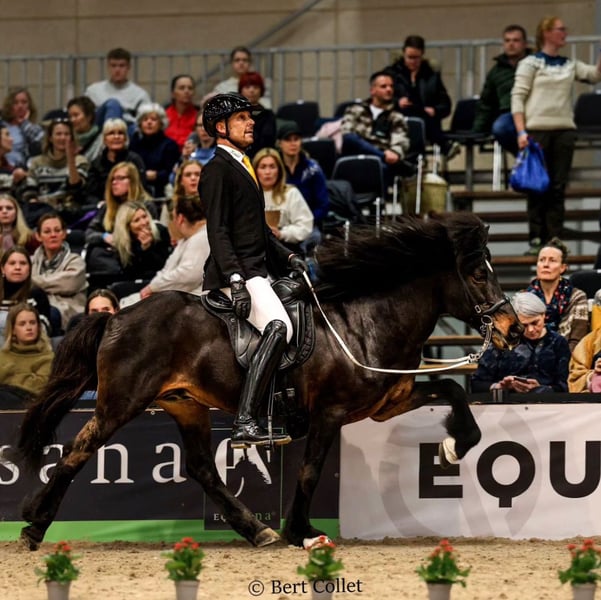 Stjörnustæll frá Dalvík(Fizo 8,4 - Reiteigenschaften 8,5) *Deckhengst 2024* *15.06.2006 V: Rammi frá Búlandi (Fizo: 8,18) VV: Keilir frá Miðsitju (Fizo 8,63) M: Saga frá Bakka (Fizo Gebäude: 8,23) Dieser außergewöhnliche Hengst wartet darauf, eure Stuten zu begrüßen! Viel natürlicher Tölt mit hochweiten Bewegungen, elastischer Trab, extrem guter Galopp und zudem noch sehr guter Pass- dafür steht Störnustæll! Nicht nur seine beeindruckende Mechanik macht ihn besonders, auch sein tolles Gebäude und seine gigantische Abstammung lassen keine Wünsche offen! Stjörnurstæll lief bei den Weltmeisterschaften T2, F1 und PP1. Er verbucht zahlreiche Siege, unter anderem auf dem Islandsmot im Fünfgang mit 7,37 Punkten und bei den norwegischen Meisterschaften in der T2 mit 8,1 Punkten! Stjörnustæll ist ein ausgeglichener, ruhiger Hengst der sich im Umgang stehts vorbildlich verhält- so ist er auch super lieb mit seinen Stuten. 2025 konnte Stjörnustæll s Sohn Hannibal vom Recherbusch das beste Fohlen in ganz Deutschland werden! Stjörnustæll deckt bei uns an der Hand- weitere Informationen und unsere Deckbedingungen gibt es unter www.islandpferde-recherbusch.de .