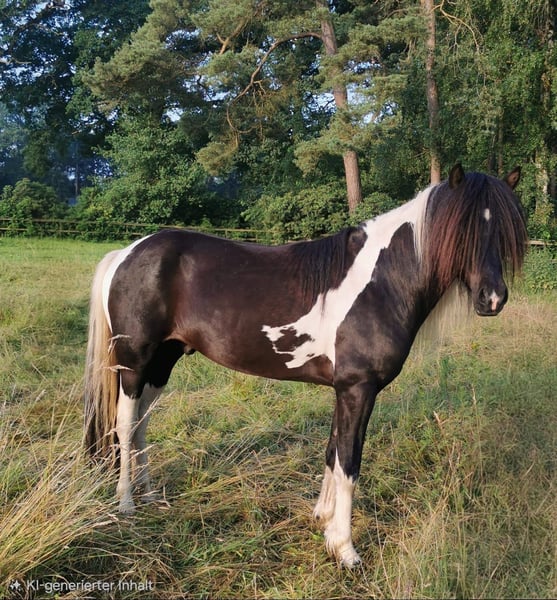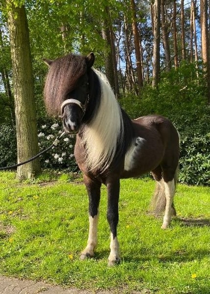 Árvakur of Streekermoor DE2020110946 Purebred Rapp Check Gelding (100% pinto offspring) with star and snip Impressive mane and tail, a true eye-catcher with pinto color guarantee Árvakur is an elegant, expressive breeding stallion born in 2020, impressing with his abundant mane and tail, striking markings, and harmonious overall appearance. As a purebred pinto stallion (TOTO), he is especially interesting for color breeding. Beyond his appearance, Árvakur also impresses under saddle: he has a very smooth, absolutely rhythmical tölt that is easy to collect. This pronounced tölt ability reliably passes to his offspring. Árvakur combines tölt quality, character, and charisma with an impeccable, brave, and consistently interested temperament. Born in Germany, Árvakur boasts a top-tier pedigree: His sire, Herkúles frá Ragnheiðarstöðum, from the proven line of Álfur frá Selfossi and Orri frá Þúfu í Landeyjum, is known for quality and gait. His damline also impresses with performance-tested and breeding-strong lines, including Pristur frá Feti, with numerous proven offspring in sport and breeding. Árvakur himself was licensed as an elite stallion in 2023 at the age of three. The first foal crop in 2025 is already exciting with exceptional tölt reliability, light-footed movements with good balance, and distinctive coloring. Breeding conditions: Árvakur covers by arrangement at the Island Pony Farm Streekermoor, on pasture and by hand. Requirements for mares: * current uterine swab test * CM test Stud fee: €800 Pasture fee: €6 per day