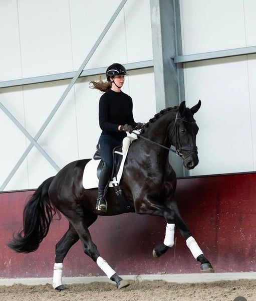 Questo castrone nero è un vero cavallo versatile. A 9 anni e con un'altezza al garrese di circa 169 cm, rappresenta una buona base sia per lo sport che per il tempo libero. In dressage si muove con sicurezza a livello L. Giovane castrone con molto talento per il salto. È stato presentato con successo fino a 1,10 m ed è pronto per affrontare i 1,20 m. Certificato TÜV con serie completa di radiografie disponibile.