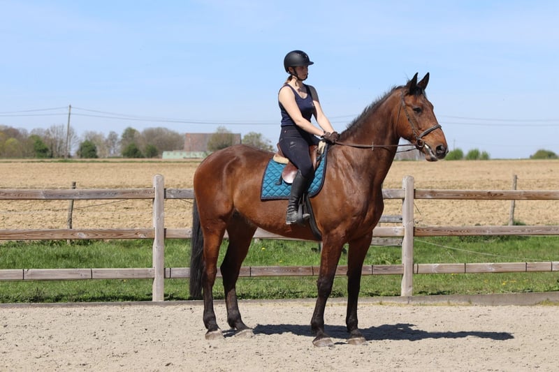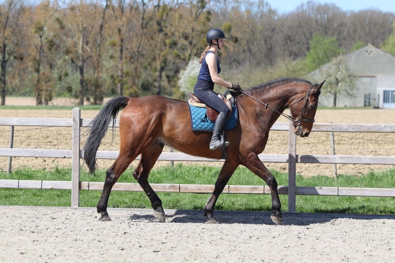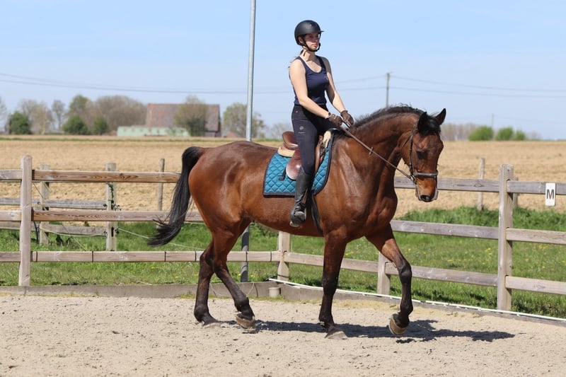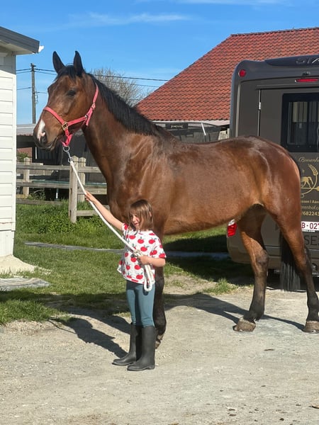 Sherman, a stunning Irish Sport Horse of exceptional size. Standing at an impressive height of approximately 16.2 to 16.3 hh, he makes a commanding presence, but behind that remarkable stature lies a gentle and honest character. He is a 10-year-old gelding. Sherman is a true sweetheart in handling. Even the smallest child can do everything with him – he is so well-behaved and reliable. Under saddle, he also shows his best side: he is calm to ride and possesses an exceptional jumping ability. Distances? They seem to pose no problem for him. He jumps with ease and confidence, regardless of what is asked of him. Outside the arena, Sherman is a dream. On walks, he is very well-behaved, even when ridden alone. Tractors, barking dogs, or other distractions? He remains calm and passes everything without issues. An honest horse you can truly count on. In the pasture, he is social and gets along well with other horses and ponies, making him a great companion. Like any top horse, Sherman has a small area for improvement. Due to his large size, he has likely bumped his head in the past, which is why he is somewhat sensitive to having his ears touched. This is currently being addressed with professional guidance, and progress is clearly visible. Putting on the bridle requires a slightly adapted approach. Additionally, he has a mild form of roaring. Sherman is undoubtedly a special horse – a gentle giant with talent, honesty, and a heart of gold. Interested in more information about this exceptional horse? 📞 0032475682243 🎥 For videos: ask for our website