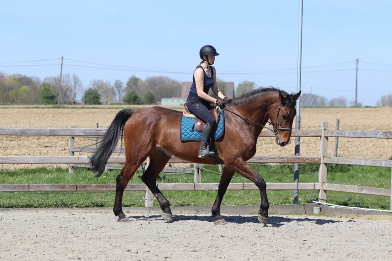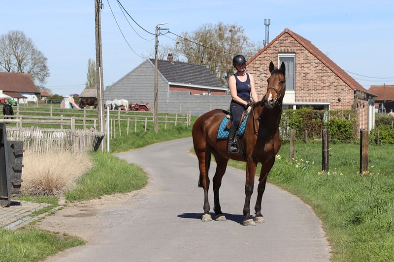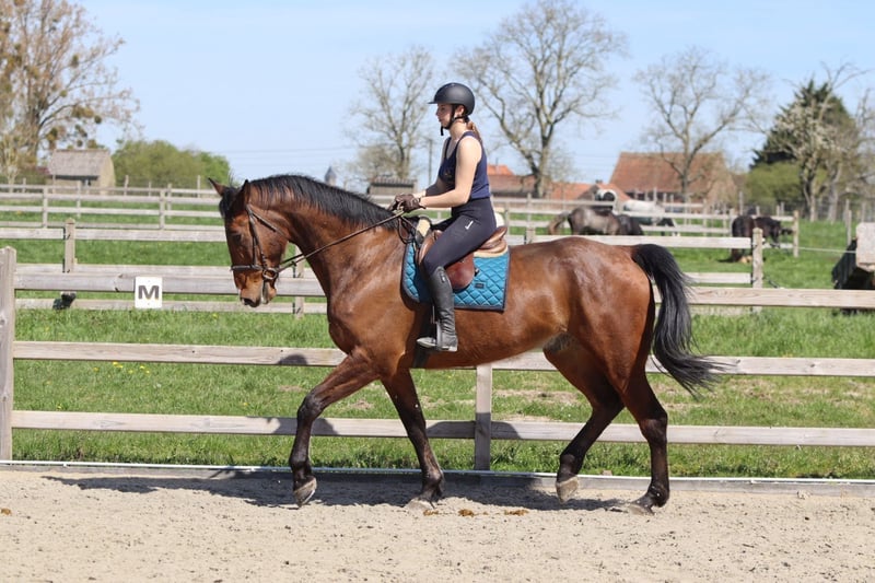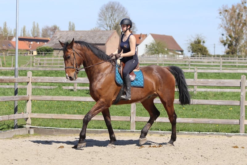 Sherman, un magnifique cheval de sport irlandais de taille exceptionnelle. Avec une hauteur au garrot de 1,80 m à 1,83 m, il impose par sa stature, mais derrière cette taille impressionnante se cache un caractère doux et sincère. Il est âgé de 10 ans, hongre. Sherman est un véritable gentil cheval dans ses interactions. Même le plus jeune enfant peut tout faire avec lui – il est si calme et fiable. En selle, il montre également le meilleur de lui-même : il est tranquille à monter et possède un talent exceptionnel pour le saut d’obstacles. Les distances ? Aucun problème pour lui. Avec aisance et confiance, il continue de sauter, peu importe ce qu’on lui demande. En dehors de la carrière, Sherman est aussi un rêve. Lors des promenades, il est très sage, même lorsqu’il part seul. Tracteurs, chiens qui aboient ou autres stimuli ? Il reste calme et passe partout sans souci. Un cheval sincère sur lequel on peut vraiment compter. Dans le pré, il est sociable et s’entend bien avec d’autres chevaux et poneys, ce qui en fait un compagnon agréable. Comme tout top cheval, Sherman a aussi un petit point faible. En raison de sa grande taille, il a probablement déjà heurté sa tête par le passé, ce qui explique qu’il n’aime pas qu’on touche ses oreilles. Un travail professionnel est en cours pour améliorer cette situation, et des progrès sont clairement visibles. Mettre le bridon demande donc une approche légèrement adaptée. De plus, il présente une légère forme de bruxisme. Sherman est sans aucun doute un cheval exceptionnel – un géant doux avec du talent, de l’honnêteté et un cœur d’or. Plus d’informations sur ce cheval unique ? 📞 0032475682243 🎥 Pour voir des vidéos : demandez notre site internet