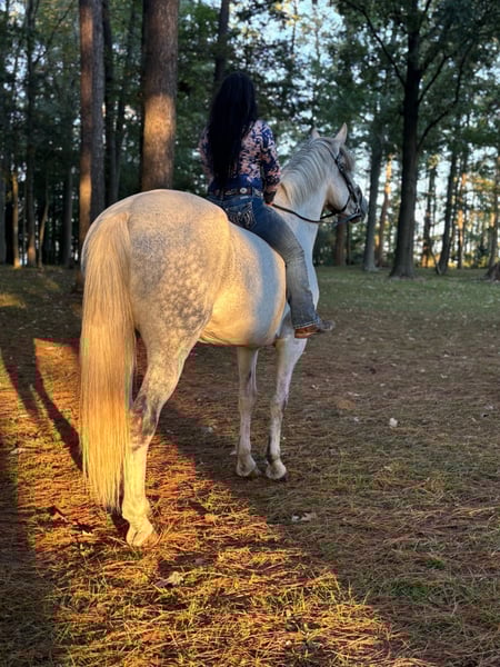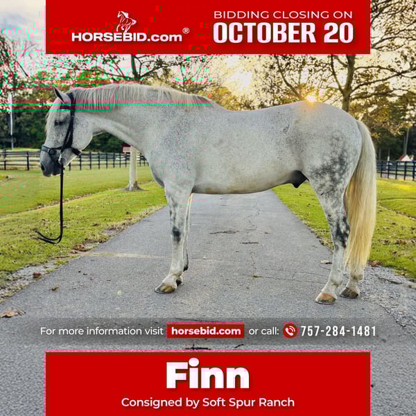 ♦️ 𝐭𝐡𝐞 𝐀𝐌𝐄𝐑𝐈𝐂𝐀𝐍 𝓕𝓪𝓵𝓵 𝓒𝓵𝓪𝓼𝓼𝓲𝓬 ♦️ Happening now thru MONDAY | OCTOBER 20th - Available EXCLUSIVELY on HorseBid's website! For more details and to register visit: www.Horsebid.com CONSIGNOR CONTACT: Soft Spur Ranch 757-284-1481 LOCATION: Edenton, NC BREED: Irish Sporthorse REGISTERED: No COLOR: Grey HEIGHT: 16.2 AGE: 11 GENDER: Gelding Finn is an 11 year old 16.2hh ISH gelding. No papers in hand, but he was imported from Ireland at a young age and has proven himself out fox hunting and eventing. He has happily fox hunted all three flights, but is a true athlete in first and second flight. He has shown novice level eventing at local events and has easily schooled training level. He has even participated in ISH classes with junior riders where he placed very well within his breed. Finn is perfect out trail riding alone or in groups. I believe he identifies as part fish with how much he enjoys to go out for a swim. This guy is unflappable and is suitable for any level of rider. He loads, ties, and clips. He has great ground manners and no quirks or vices. No maintenance required and is sound with no past injuries or medical issues. Finn is the horse you can put the whole family on. He will jump anything you point him at without blinking. He is a once in a lifetime horse.