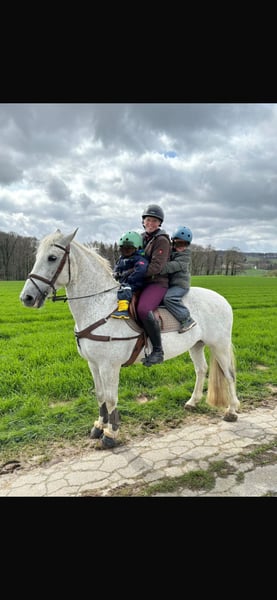 Schweren Herzens verkaufe ich, aus Zeitmangel, meinen 16 jährigen Schimmelwallach. Er ist ein irisches Pferd mit Original Pass. Ein Herzenspferd, dass gerne nur ins Gelände geritten werden möchte. Er ist ein absolutes Verlasspferd, jedoch schon von der schnelleren Sorte (alleine auf Grund seines Körperbaus). Auch regelmäßig lange Ausritte im Schritt würden dem kleinen Schimmelchen gut gefallen. Auch das Reiten auf Jagden und das Führen an einer Hundemeute als Equipage-Pferd wären möglich. Er ist kinderlieb, verladefromm, Schmiedefromm, läuft aber aktuell barhuf. Eigentlich macht er alles mit. Er ist kein schmales Pferd, aber auf Grund seiner Größe von ca. 1,55m kein Gewichtsträger. Er ist sehr robust, unverbraucht und war nie lahm. Die Fotos sind gesammelte Werke aus den letzten 12 Jahren. Ich wünsche mir ein liebevolles neues zu Hause in dem er die Aufmerksamkeit bekommt die er verdient. Platz vor Preis.