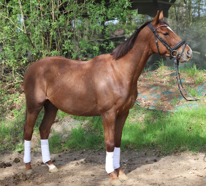Sehr geehrte Damen und Herren zum Verkauf steht hier ein 150 cm großer Pony Wallach . Breeser Lebt aktuell bei uns im Offenstahl in einer gemischten Herde ist Barhufer und absolut Herden verträglich gerne geht er ins Gelände macht aber auch bei der Platzarbeit jeden Tag Spaß sie suchen ein braves Hobby und Freizeitpferd (groß Pony) für gemeinsame Ausritte und Platzarbeit dann schauen Sie sich gerne diesen kleinen Wallach an. Für das Vorstellen und Probereiten unserer Verkaufspferde berechnen wir eine Gebühr einmalig von 20euro Öl wir bitten um ihr Verständnis eine klinische Ankaufsuntersuchung liegt aktuell vor und ist in Ordnung weiteres gerne über whats app Telefon 01722734811