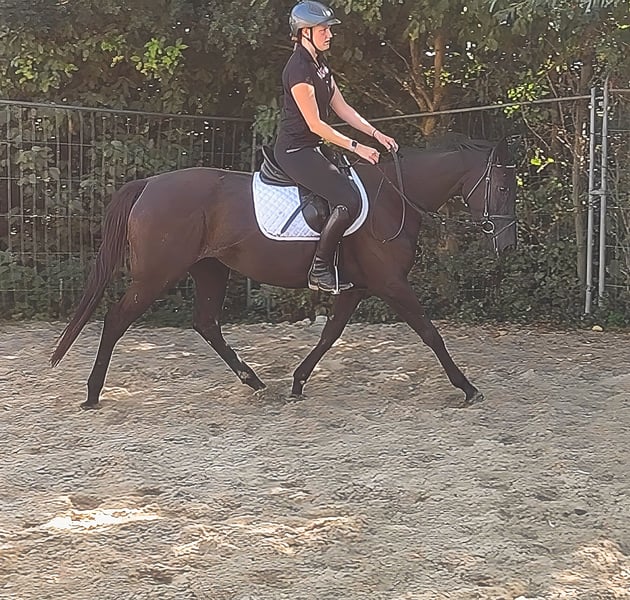 Dylara est déjà très agréable à monter malgré son jeune âge de 3 ans. Elle se montre très détendue sous la selle et sait convaincre avec ses allures harmonieuses et énergiques. Dylara a été montée en manège, sur le terrain et également en extérieur. (Elle a été montée ici par une fille.) Elle se montre sociable au sein du troupeau et est toujours prête à apprendre de nouvelles choses. En résumé, c'est une jument idéale pour laquelle nous envisageons une utilisation dans le sport équestre ainsi que dans les loisirs de haut niveau. Si besoin, elle peut être vendue avec tout un nouvel équipement pour un léger supplément. Le transport peut être organisé. Une reprise est possible. Un examen vétérinaire d'achat peut également être effectué par votre propre vétérinaire, y compris des radiographies et des analyses de sang. Nous répondons volontiers à toutes vos questions par téléphone au 015172059610. Les demandes écrites (e-mail, WhatsApp, etc.) ne seront pas répondues. Nous sommes d'avis que "celui qui s'intéresse réellement à un cheval, appelle." Les appels masqués seront automatiquement rejetés.
