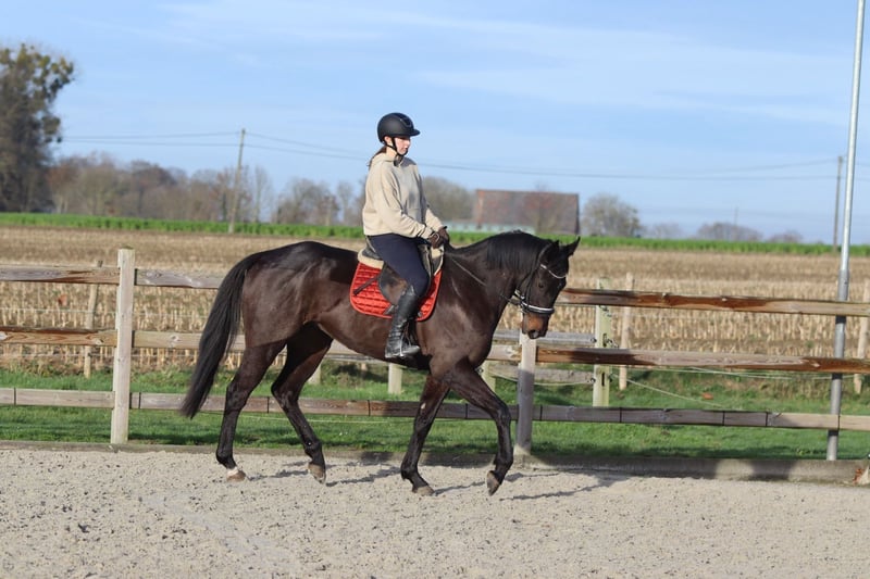 Tiger – magnifique hongre noir de 4 ans (environ 1,66 m) Tiger est un magnifique hongre noir de 4 ans, mesurant environ 1,66 m au garrot. Il est très calme et patient en main, et se laisse manipuler et soigner avec plaisir. Sous la selle, Tiger est souple et réceptif, et se montre comme un cheval calme et fiable, sans comportement problématique. Il aime sauter et le fait facilement, parcourant un parcours de 80 cm sans difficulté. En dehors du manège, Tiger est également un bon compagnon : il n’a pas peur en ville et ne se montre pas regardant. De plus, il est facile à transporter. 📞 Plus d’informations ? 0032 475 68 22 43 🎥 Vidéos disponibles – n’hésitez pas à demander notre site internet.