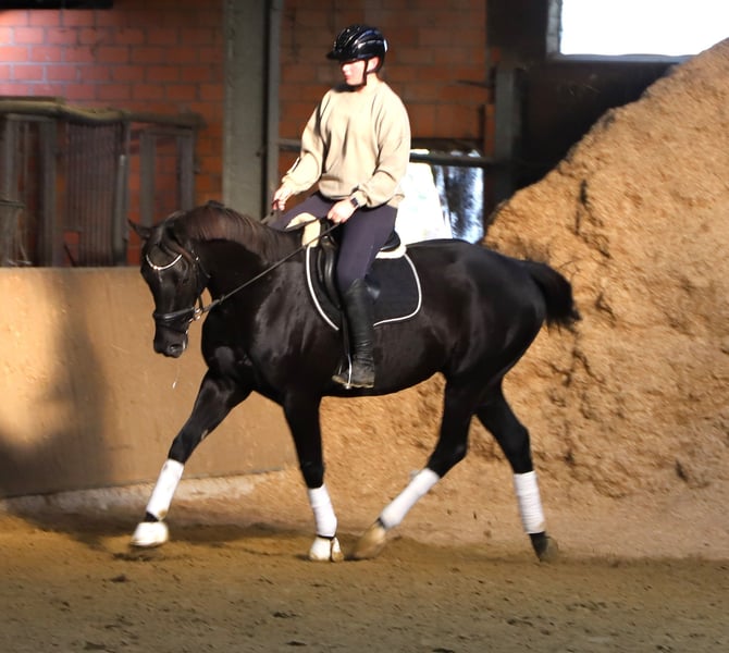 Irish Sport Horse Gelding – Perfect for Leisure and Hobbies! We are offering a beautiful Irish Sport Horse gelding, born in 2018. This elegant black gelding impresses with his friendly temperament and versatile suitability. Standing at 16.0 hh, he is the ideal size for recreational riding and hobby riders. The horse is well-trained, reliable, and easy to handle. Whether for leisurely rides, long walks, or relaxed hacking – this gelding is the perfect companion for enjoyable hours in nature. If interested or for more information, please feel free to contact me. A trial ride can be arranged by appointment. Feel free to ask further questions via WhatsApp at 01722734811.