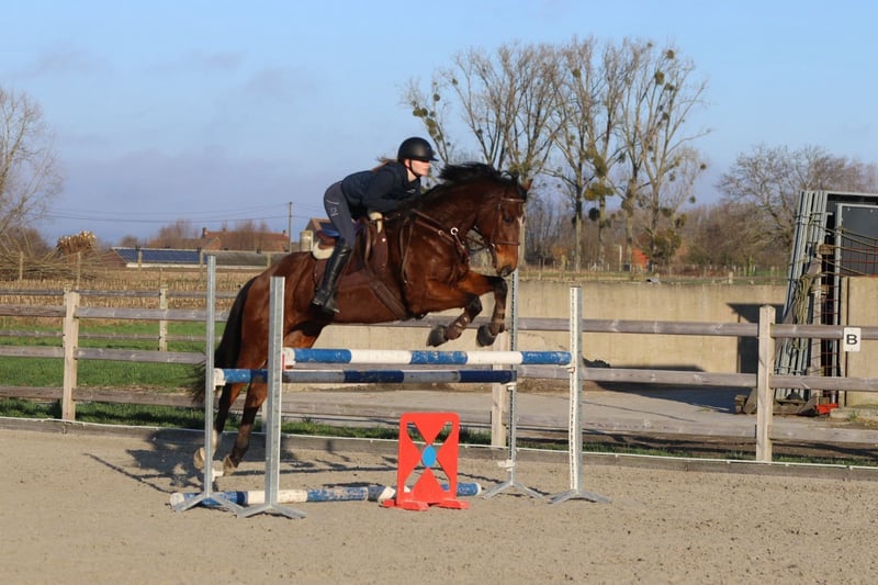 Big Job – un partenaire fiable pour le sport et le plaisir Big Job est un hongre de 7 ans, mesurant 1,64 m, doté d’un caractère exceptionnellement doux. En dehors du box, c’est un véritable gentleman : très gentil, obéissant et patient, il reste calme pendant des heures, donne ses sabots sans problème et monte facilement en camion. Un cheval avec lequel on prend plaisir à travailler chaque jour. Sous la selle, Big Job est extrêmement agréable à monter. Il se déplace léger, souple et facile à faire céder, avec déjà une expérience en dressage comme en saut d’obstacles en compétition. En concours, il saute jusqu’à 1,00 m, et à la maison, il passe aisément un parcours de 1,15 m. Il le fait de manière simple et honnête : il ne refuse pas, ne regarde pas la hauteur et il est très facile de réguler la distance et le rythme. Vous le guidez vers le saut, et Big Job fait le reste. Il possède également une expérience en eventing. Grâce à sa volonté de travailler et à sa fiabilité, Big Job convient aussi bien à un cavalier débutant qu’à un cavalier plus expérimenté. Un cheval avec lequel on peut progresser et prendre du plaisir. Big Job a été examiné cliniquement le 11/12/25. Nous souhaitons être transparents en mentionnant deux points d’attention : - Il présente un overbite, vérifié par le vétérinaire, sans impact sur la nourriture ou le fonctionnement. - Ses sabots présentent des rainures verticales dues à un ancien entretien moins soigné. Celles-ci ne vont pas jusqu’au bord de la corne et doivent simplement continuer à pousser. Nous disposons de nombreuses vidéos en dressage et en saut d’obstacles. N’hésitez pas à consulter notre site internet ou à nous contacter via WhatsApp : +32 475 68 22 43.