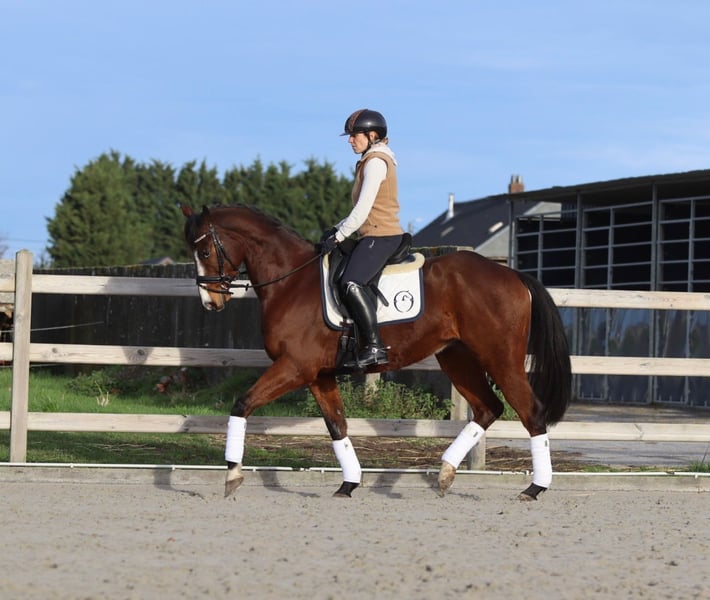 Big Job – Zuverlässiger Partner für Sport und Freizeit Big Job ist ein 7-jähriger Wallach mit einer Größe von 1,64 m und einem außergewöhnlich freundlichen Charakter. Im Umgang ist er ein wahrer Gentleman: sehr lieb, brav und geduldig. Er bleibt ruhig stundenlang stehen, gibt problemlos seine Hufe und lässt sich leicht verladen. Ein Pferd, mit dem man jeden Tag mit Freude arbeitet. Unter dem Sattel ist Big Job äußerst angenehm zu reiten. Er läuft leicht, fein an den Zügeln und ist gut nachgiebig. Er hat bereits Erfahrung in Dressur und Springen auf Turnierniveau. Im Wettkampf springt er bis 1,00 m, zuhause bewältigt er mühelos Parcours bis 1,15 m. Dabei ist er einfach und ehrlich: er weigert sich nicht, schaut bei den Sprüngen nicht weg und ist sehr gut in der Distanz- und Temposteuerung. Man gibt ihm die Anweisung zum Sprung, den Rest übernimmt Big Job. Auch Erfahrung im Vielseitigkeitsreiten ist vorhanden. Dank seiner Arbeitsbereitschaft und Zuverlässigkeit ist Big Job sowohl für Anfänger als auch für erfahrene Reiter geeignet. Ein Pferd, mit dem man wachsen und gleichzeitig genießen kann. Big Job wurde am 11.12.2025 tierärztlich untersucht. Wir möchten zwei Punkte transparent anmerken: - Er hat einen Überbiss, der vom Tierarzt kontrolliert wurde und keinen Einfluss auf Fressen oder Funktion hat. - Seine Hufe zeigen vertikale Riefen, verursacht durch frühere, weniger sorgfältige Hufpflege. Diese verlaufen nicht bis in die Kronrande, sondern müssen einfach nachwachsen. Wir verfügen über zahlreiche Dressur- und Springvideos. Gerne senden wir Ihnen den Link zu unserer Webseite oder kontaktieren Sie uns via WhatsApp: +32 475 68 22 43.