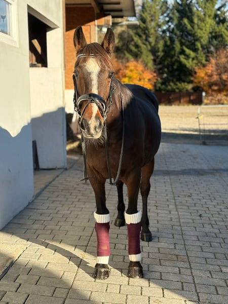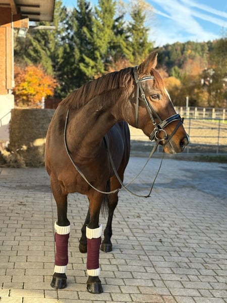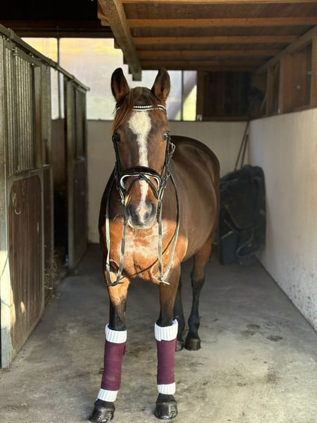 ✨ Dream Mare – Irish Sport Horse, Well-Ridden & Beautiful ✨ Breed: Irish Sport Horse Gender: Mare Born: 2016 Height: approximately 16.0 hh Color: Dark Brown with a charming blaze Milli is a stunning, rideable mare that immediately captivates with her harmonious conformation and lovable nature. She excels in dressage at a very good novice level, responds delicately to aids, and offers soft, comfortable gaits that make every ride a pleasure. She is easy to ride, always attentive, motivated, and has plenty of go – a true dream horse for experienced riders who enjoy fine riding. In addition to dressage, she enjoys going over poles and is extremely well-behaved, brave, and reliable in the field. She is comfortable crossing water, knows small cross-country jumps, and has also been used for hunting in Ireland. Whether alone or in a group, she remains calm and confident. In handling, she is simply a sweetheart – impeccable character, easy to shoe (front hooves shod), loading well, and free of vices. She is in excellent health, with no restrictions or special needs. A pre-purchase exam can be arranged at any time. She is familiar with both open stable and box stall housing and is suitable for both. Her complete tack can also be purchased at an additional cost. Transportation can be organized if needed. If our lovely mare has caught your attention, we look forward to hearing from you and arranging a personal meeting.