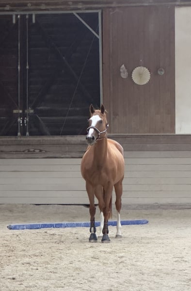 Aus persönlichen Gründen muss ich mich schweren Herzens von meiner absolut lieben ISH Stute Toffee trennen. Toffifee ist ein 2015 in Irland geborenes Irisches Sportpferd. Sie hat einen absolut ehrlichen und geduldigen Charakter, sowohl im Umgang als auch unter dem Sattel. Sie ist routiniert im Gelände, sowohl alleine als auch mit Begleitung. Sie kennt sämtliche Unweltfaktoren und bleibt stets händelbar. In der Halle und auf dem Platz arbeiten wir überwiegend an der Dressur, hier braucht sie einen sicheren Reiter, der weiß was er tut und sich sicher in der Hilfengebung ist. Toffee lässt sich sehr fein reiten, allerdings hat sie anfangs immer mal wieder noch probleme mit der Konstanten anlehnung, ebenso fehlt ihr manchmal etwas das Selbstbewusstsein. Sie ist ein sehr unerschrockenes Pferd und lässt so ziemlich alles mit sich machen. Springen wurde mit ihr nicht wirklich gefördert, all zu schlecht stellt sie sich aber nicht an. Sie ist aktuell 4 fach beschlagen, artig beim Schmied und auch beim Impfen, Wurmkur. Sie ist verladefromm, steht aktuell in einer Paddockbox, kennt aber auch den Offenstall in einer Stutenherde. Aufgrund eines kleinen Schönheitsfehlers, der sie nicht beeinträchtigt und wegen mangelndem Ausbildungsstand wird sie unter wert verkauft, hierzu privat aber gerne mehr. Bei Interesse kann auch gern die Ausrüstung gegen Aufpreis mit gekauft werden, darunter ein Passier Corona II Dressursattel und ein Prestige Paris X Springsattel, beide angepasst und in sehr gutem Zustand. Bei Interesse oder weiteren Fragen bitte ausschließlich per Whatsapp unter der Nummer 0172 7602697 melden. Toffee wird unter keinen Umständen in den Schulbetrieb oder an einen Händler abgegeben. Aktuelle Röntgenbilder von ende 2025 können privat gerne zugeschickt werden. Merkmale: - Rasse: Irish Sport Horse - Geschlecht: Stute - Geburtsjahr: 2015 - Farbe: Fuchs - Stockmaß: ca. 156 cm - Einsatzgebiet: Freizeit