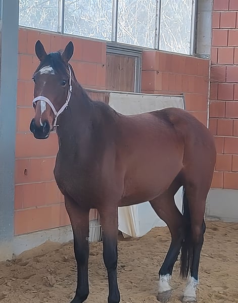 Sweet 12-year-old mare that everyone will instantly fall in love with. She is familiar with tractors, trucks, and other machinery. She quickly integrates into a new herd and immediately seeks out new friends. She is also comfortable around other animals, such as dogs. She has been ridden both indoors and on the trails. If desired, she can be sold with complete new tack for a small additional fee. Transportation can be arranged. A veterinary pre-purchase exam, including X-rays and blood tests, can be performed by your own veterinarian if preferred. We look forward to your call at 01774289729. Written inquiries will not be answered. Calls from blocked numbers will be automatically rejected.
