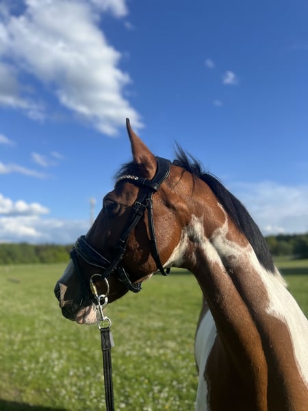 Miss Dakota, a 15-year-old mare, is a gentle, affectionate horse seeking a new, suitable home. She is very people-oriented and reliable in daily handling. In groundwork and lunging, she works attentively and with enthusiasm, always easy to handle. She is also a trustworthy partner in the field, riding calmly and well-behaved in a group setting. Under saddle, Miss Dakota requires a consistent, clear leadership. She is not suitable for children or beginners, as she needs a confident, experienced rider who can give her guidance. With the right person by her side, she can showcase her full potential and brings great joy to riding. She particularly thrives over fences, displaying enthusiasm and talent. Miss Dakota is a loyal, motivated mare with a big heart, looking for a partner who understands and nurtures her. Her saddle is currently being sold, so a trial ride without a saddle is only possible at the moment. She will be sold with various accessories. She is 15 years old and measures 1.57 meters at the withers. This is not a desperate sale; I am looking for a loving home where she will be appreciated and valued. If interested or if you have any questions, please feel free to contact me.