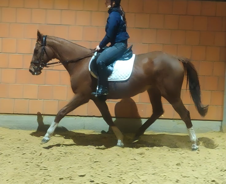 Süße 15 j ca. 158 cm große Stute mit schönen Bewegungen. Angenehm weich zu sitzen. Kennt Trecker, LKWs usw.In der Herde defensiv . Sie integriert sich schnell und ist immer auf der Suche nach neuen Pferdekumpels. Mit guter Abstammung. Auch als Zuchtstute eingetragen.In nette Hände, gerne mit Pferdegesellschaft abzugeben.Bei Bedarf gegen geringen Aufpreis mit kompletten neuen Zubehör abzugeben. Transport kann organisiert werden. Tierärztliche Ankaufsuntersuchung kann auch durch Ihren eigenen Tierarzt inklusive Röntgen und Blutuntersuchung erstellt werden. Wir brauchen Platz,daher für schnellentschlossene Käufer zu diesem überaus günstigen Preis abzugeben. Wir freuen uns auf Ihren Anruf unter 01774289729. Schriftliche Anfragen werden Nicht beantwortet.
