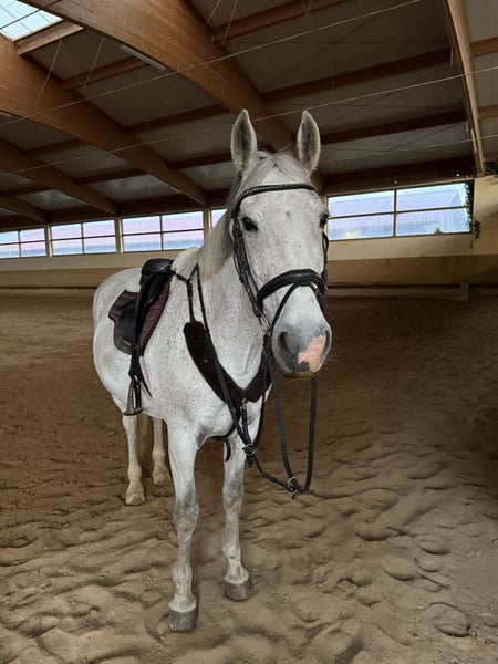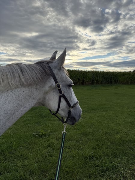 Hello everyone, I am currently looking for a new care or riding partner for my mare Selly. Unfortunately, Selly has an injury at the moment, which means she cannot be ridden. We are currently in the healing and rehabilitation phase and hope that she will be rideable again in the near future. Here are some key details about Selly: - 16 years old (born in 2009) - Irish Draught Horse - Grey - 158 cm tall - Experienced in competitions, both in dressage up to L level and in show jumping up to A level, as well as in cross-country up to E level (it would be possible for you to take her to competitions) - Jumped up to M level in training - She is very reliable in show jumping and cross-country, making her suitable for beginners/children. - Good at loading A few facts: - She is a bit of a diva and can be a little spooky on some days - Other horses are not her favorite - She originally comes from Ireland - She is very easy to care for and always looks forward to going out to the pasture - She loves being groomed and spoiled with carrots What I value highly: - Her health must always be the top priority! - As a riding partner, you should take lessons at least once a week, especially at the beginning. What you should bring: - If you are interested in a riding partnership, you should be able to ride at a good A level in both show jumping and dressage (it would be great if you particularly enjoy dressage, so we can complement each other). - Selly enjoys going out on trails and has a lot of fun with it, so you should be confident in the outdoors. - If you enjoy groundwork, that would be a plus. - If you are interested in a purely care partnership, you should definitely have groundwork skills and enjoy going for walks in the countryside. Facts about the stable and price expectations: - The stable is located in the northeast of Munich and is easily accessible by public transport, so you do not necessarily need a car. - My price expectations are €200-250/month for 2-3 times a week once she is rideable again, and €100/month for a purely care partnership.