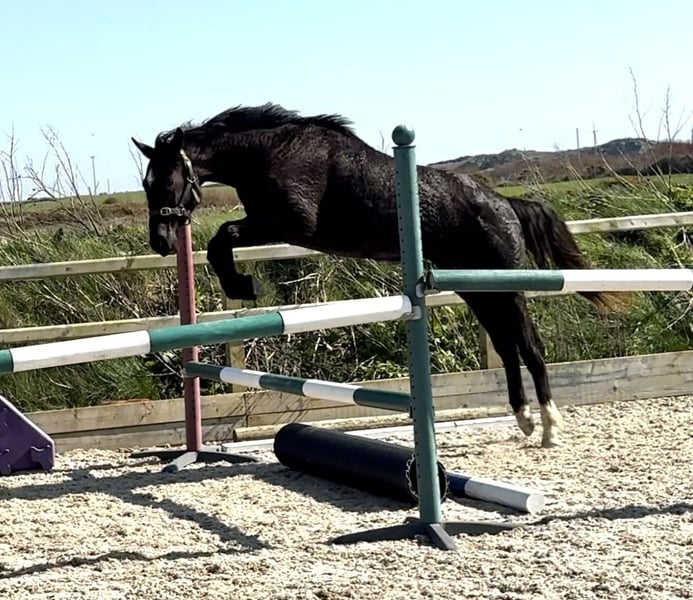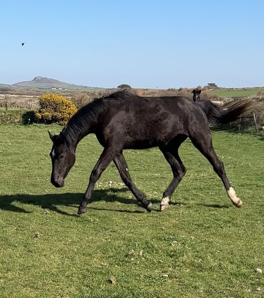 Der temperamentvolle und talentierte Nachwuchs, den man sich nur wünschen kann. Atemberaubende schwarze Zweijährige Stute, aufstrebend, von Lagans OBOS Quality / OBOS Quality x Lougherne Connaught. Geboren für einen guten Geist ebenso wie für Talent! Erwartete Endgröße ca. 16,2/16,3 hh. Nachkommen sowohl ihres Vaters als auch ihrer Mutterlinie treten aktiv bei den höchsten internationalen und olympischen Turnieren an. Ihre beeindruckende Abstammung umfasst: ❕Lougherne Connaught – internationaler Springreiter bis 1,60 m ❕Quick Star – 1,70 m olympischer Springreiter ❕Cavalier Royale – Puissance-Sieger und Top-Niveau Springreiter ❕Cassini I – nationaler Grand Prix Hengst bis 1,50 m ❕Carrolls Flight – internationaler Springreiter bis 1,60 m Die Mutter selbst sprang bis 1,25 m, bevor sie auf Vielseitigkeit umstieg. Die zweite Mutter war bei CSI 1,30 m aktiv und brachte Nachkommen auf diesem Niveau hervor. Die dritte Mutter war CCI4* Vielseitigkeitsreiterin, mit Nachkommen auf CCI3*-Niveau. Sie wird nur an eine engagierte Spring- oder Vielseitigkeitsfamilie abgegeben. Pepsi ist eine äußerst elegante Stute. Sie wäre eine starke Kandidatin für die Einstufung als 3-jährige. Sie ist der freundlichste und angenehmste Nachwuchs, den man sich nur vorstellen kann. Sie ist unglaublich leicht im Umgang. Verlässlich im täglichen Handling, beim Anbinden, selbstständig beim Verladen, unterwegs allein oder in Gesellschaft, im Umgang mit dem Hufschmied etc. – einfach goldwert.