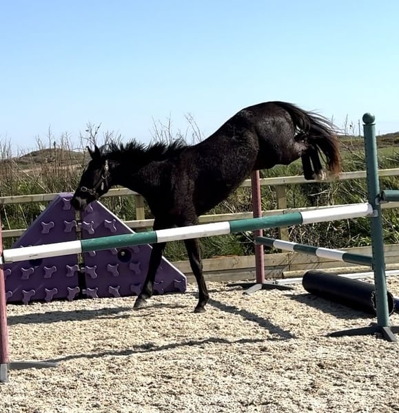 The most fantastic temperament and talent you could wish for a young horse. Stunning black rising 2yo filly by Lagans OBOS Quality / OBOS Quality x Lougherne Connaught. Bred for a good brain as well as talent! Expected to mature to approximately 16.2/16.3hh Progeny from both her sire and dam lines are actively competing at the highest international and Olympic levels. Her impressive lineage features: ❕Lougherne Connaught – international 1.60m showjumper ❕Quick Star – 1.70m Olympic showjumper ❕Cavalier Royale – puissance winner and top-❕level showjumper ❕Cassini I – 1.50m national Grand Prix stallion ❕Carrolls Flight – 1.60m international showjumper Dam herself showjumped up to 1.25m before transitioning to eventing. Second dam competed at CSI 1.30m, producing progeny at the same level. Third dam was a CCI4* eventer, with offspring reaching CCI3*. Will be available only to a dedicated showjumping or eventing home. Pepsi is a strikingly elegant filly. She would be a strong candidate for grading as a 3yo. This is the kindest, and most pleasing youngster you could ever dream to own. She is so incredibly easy to do everything with. Good as gold for all everyday handling, tie up, loads herself, travels alone and in company, fantastic in hand, farrier etc.