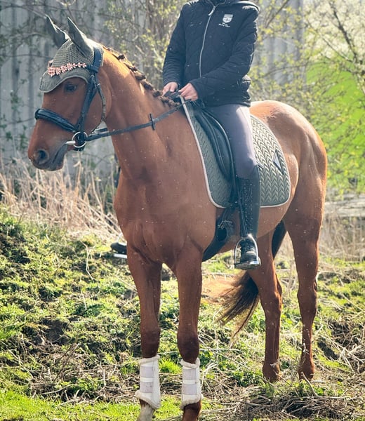 Wir suchen für unsere 3-jährige Stute Tosca ein passendes Zuhause, in dem sie altersgerecht gefördert wird. Aktuell hat sie ein Stockmaß von ca. 1,60 m. Tosca läuft bereits brav unter dem Reiter in allen drei Grundgangarten und hat mit Reiter erste Erfahrungen mit kleinen Sprüngen gesammelt. Wir sehen in ihr großes Potenzial sowohl für die Dressur als auch für den Springsport. Sie zeigt sich sehr unerschrocken, ist für ihr Alter klar im Kopf und steht artig am Putzplatz. Tosca ist barhuf und kennt das Verladen, wobei sie sich dabei unkompliziert und brav zeigt. Bei ernsthaftem Interesse bitten wir darum, uns einfach eine Telefonnummer zu schicken. Wir melden uns dann telefonisch und besprechen alles Weitere persönlich.
