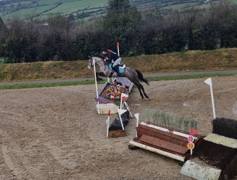 Attending Clifden pony Sale Sun April 12th Lot 197. Has the blood brain and ability to go far with a competitive rider. Taking part in EI leagues 4yo classes proving Brave and honest to jump. Comfortably going round a course of 90s Snaffle mouth at all times, a fun ride and very responsive.