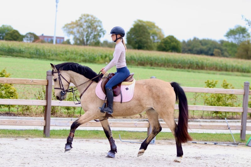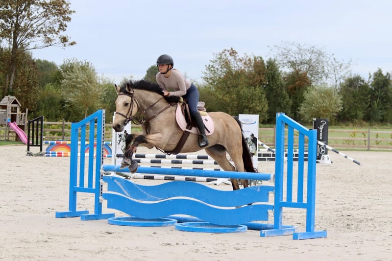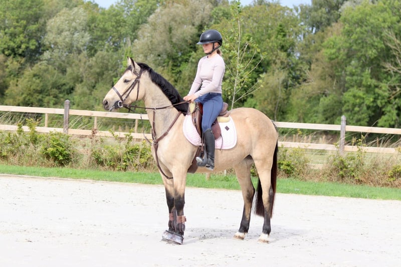 Beautiful palomino Irish Sport Horse mare – Sandy ✨ Sandy is a particularly beautiful palomino horse, 5 years old, with a friendly character, a height of 1.51m, and strong athletic potential. She is fully up to date with the dentist and has recently undergone a clinical and RX examination (legs, back, and neck). 🐎 Sport & work: • Jumps smooth courses of 75-80 cm • Has already participated in a dressage competition • Enjoys going on forest rides and outdoor walks 🌿 Character & handling: • Social, enjoys being in a group in the pasture • Works willingly and learns quickly • Reliable, but needs a rider with feel and experience Sandy feels best with a sporty and refined rider, someone who can ride calmly but clearly and wants to further develop her talent. In short, a beautiful sporty mare with many possibilities, ready to grow further together with the right rider. 📞 More info: +32 475 68 22 43 🎥 Videos available upon request via the website