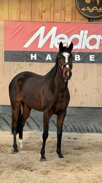 Beautiful large mare with an excellent character. From a herd reduction. She is 11 years old and well-trained under saddle. She also rides calmly alone in the field. An absolute eye-catcher and very well-behaved. She is familiar with both stable and open stall management. Standing around 16.0 hh, she comfortably covers the rider.