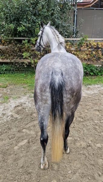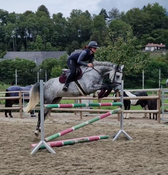 À vendre, jument Irish Sport Horse de 6 ans (taille au garrot 164 cm) avec une excellente lignée – son grand-père est le célèbre Cornet Obolensky. Cette jument bien présentée impressionne non seulement par son extérieur, mais aussi par son caractère irréprochable : elle est très gentille, absolument affectueuse et convient donc parfaitement aux jeunes, aux cavaliers de retour ou aux cavaliers moins expérimentés. ➡️ Niveau d'entraînement & aptitudes Dressage : au niveau A, maîtrise déjà les changements de pied au galop en toute sécurité Saut : parcours jusqu'au niveau A réussi avec assurance, déjà présenté avec succès en concours Toujours avec une bonne vue d'ensemble et une bonne attitude au saut – ne regarde pas, saute de manière fiable et veut toujours aller de l'autre côté Sort seule ou en groupe avec calme en extérieur, absolument nerveuse et pas peureuse ➡️ Santé & entretien En parfaite santé, sans vices Ferrée aux antérieurs Entretenue, bien construite et immédiatement prête à l'emploi Un examen clinique n'a révélé aucune anomalie 👉 C'est un véritable cheval de rêve pour les loisirs de haut niveau ou les compétitions de petite envergure. ✅ Des visites et des essais sont possibles à tout moment sur rendez-vous. ✅ Un transport peut être organisé si nécessaire.