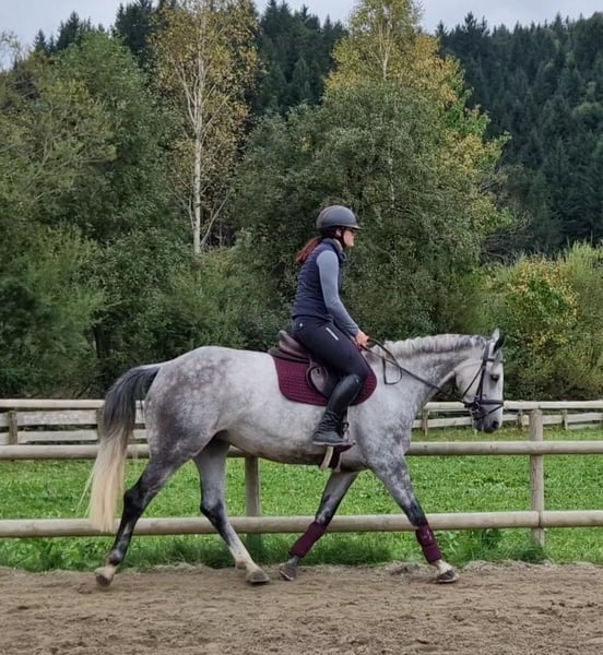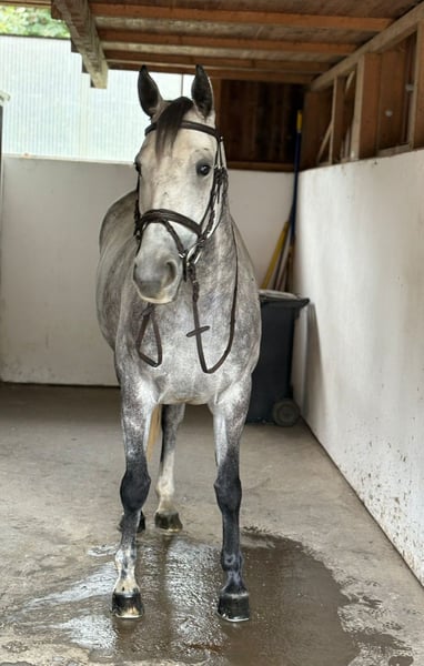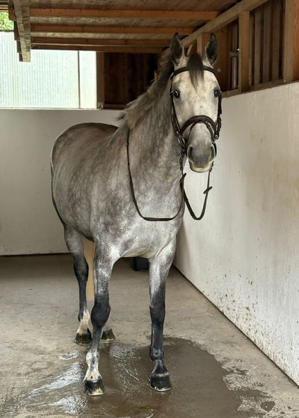Zum Verkauf steht eine 6-jährige Irish Sport Horse Stute (Stockmaß 164 cm) mit erstklassiger Abstammung – ihr Großvater ist der berühmte Cornet Obolensky. Diese hübsch aufgemachte Stute überzeugt nicht nur mit ihrem Exterieur, sondern auch mit einem einwandfreien Charakter: Sie ist sehr brav, absolut lieb und eignet sich dadurch auch bestens für Jugendliche, Wiedereinsteiger oder schwächere Reiter. ➡️ Ausbildungsstand & Eignung Dressur: auf A-Niveau, beherrscht bereits sichere Galoppwechsel Springen: Parcours bis A-Niveau sicher absolviert, bereits erfolgreich auf Turnieren vorgestellt Immer mit Übersicht und Einstellung am Sprung – nicht guckig, springt zuverlässig und will immer auf die andere Seite Geht alleine wie auch in der Gruppe brav ins Gelände, absolut nervenstark und nicht schreckhaft ➡️ Gesundheit & Haltung Kerngesund, ohne Unarten Auf den Vorderhufen beschlagen Gepflegt, korrekt gebaut und sofort einsatzbereit Klinische AKU liegt ohne Befund vor 👉 Damit ist sie ein absolutes Traumpferd für den gehobenen Freizeitsport oder den kleineren Turniersport. ✅ Besichtigungstermine und Probereiten sind jederzeit nach Absprache möglich. ✅ Ein Transport kann bei Bedarf gerne organisiert werden.