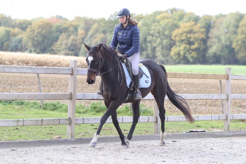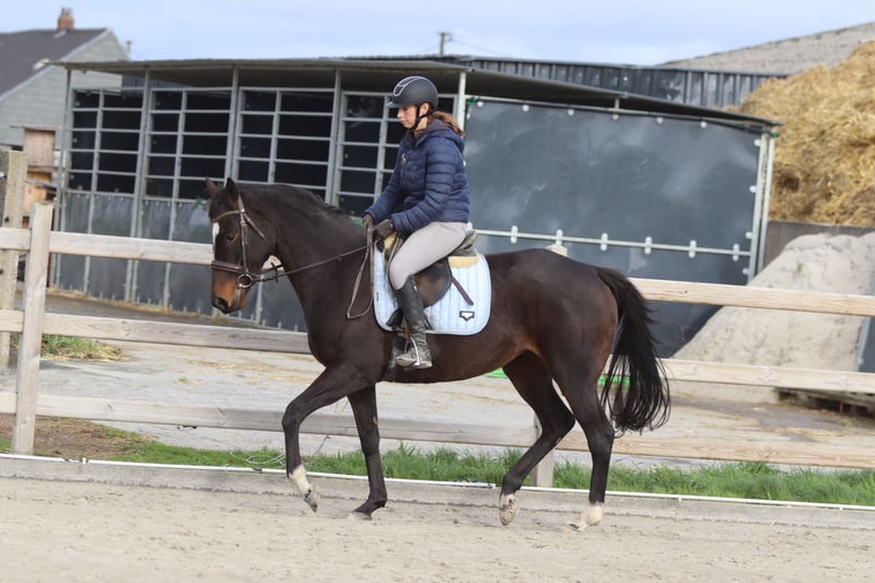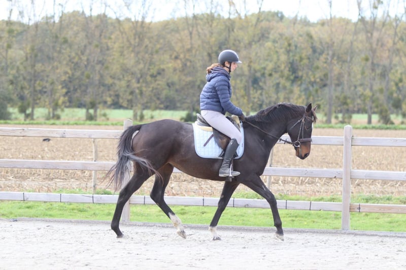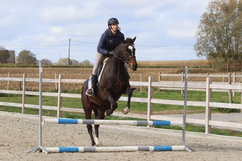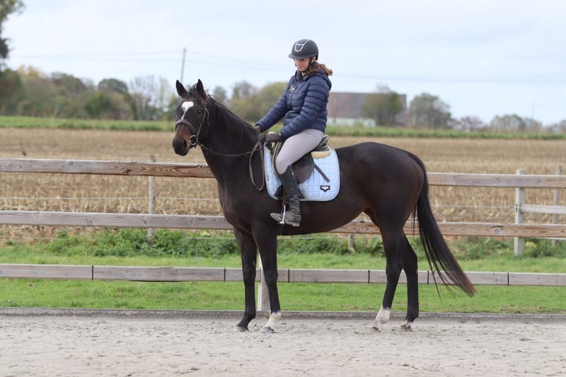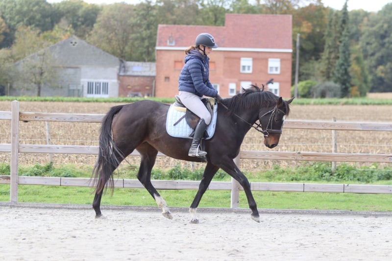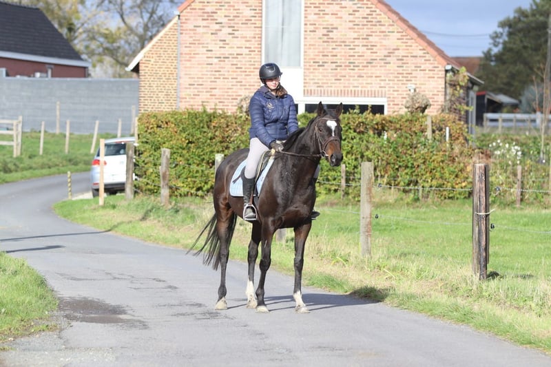 ✨ Cali ✨ Beautiful 8-year-old mare, standing 1.62 meters tall. Cali is a very pleasant and easy-to-ride horse, very well-behaved in handling with a gentle temperament 💛. 🐎 She is easy to submit and responds well to aids. 🪜 She effortlessly takes jumps of around 80 cm – with some training, there is certainly more potential! 👑 She has a lovely head and an elegant appearance. Cali is ideal for recreational riders seeking a reliable and well-behaved horse to enjoy riding and further develop their skills. 📍 Healthy and well-mannered. 📞 For more information or a test ride, call 0032475682243 Ask for videos on our website.
