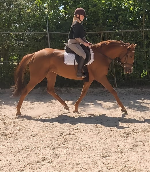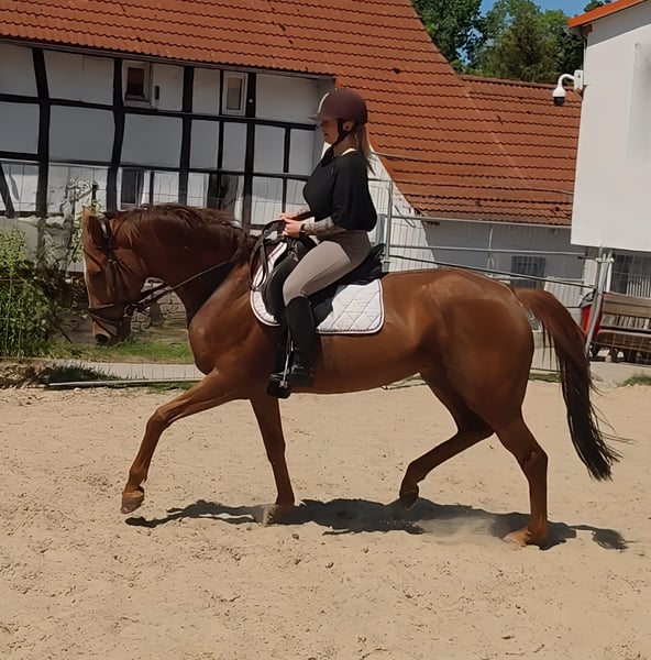 Large-framed 7-year-old mare, approximately 170 cm, with an impressive neck (visually resembling a stallion) and excellent conformation. A horse that inevitably draws the attention of fellow riders. Very easy to ride. Sensitive and trouble-free in the contact. Can be sold with complete new equipment for a small additional fee if desired. Trade-in is possible. Transport can be organized. A veterinary pre-purchase examination can also be conducted by your own veterinarian, including X-rays and blood tests. We look forward to your call at 01774289729. Written inquiries will not be answered. (And they will not be read by us, so please call exclusively.)
