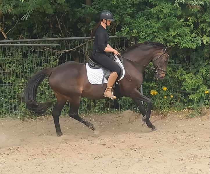Star (nickname Sternchen) is an absolute eye-catcher. At 8 years old, he is well-mannered and excellently trained. Approximately 152 cm tall (just over pony size). Interesting for children as well as for smaller adults. Ideal for starting in competitions. Extremely comfortable to ride. Relaxed downwards but also easy to position in a perfect frame. Three dynamic, well-sitting gaits. This sweet mare also impresses when jumping. A horse that makes girls' hearts race. If needed, can be sold with complete new equipment for a small additional fee. Transport is possible. A veterinary pre-purchase examination can also be conducted by your own veterinarian, including X-rays and blood tests. We look forward to your call at 01774289729. Written inquiries will not be answered. Calls from withheld numbers will be automatically rejected.