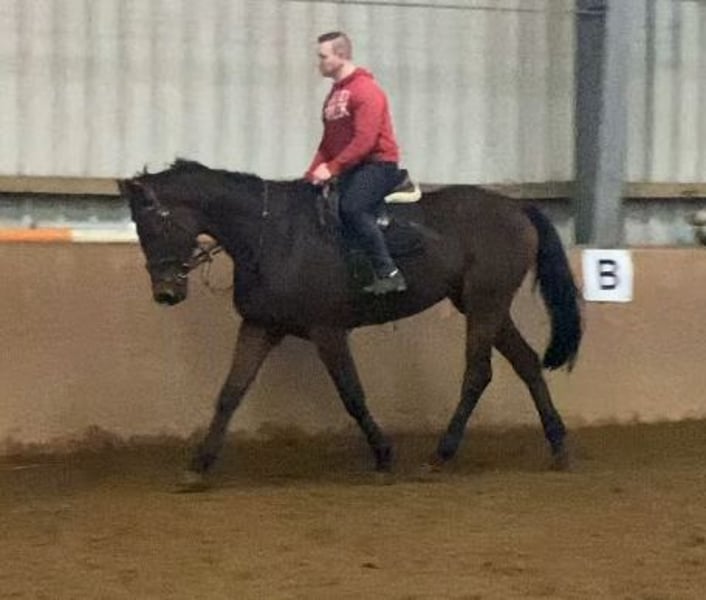 This gelding is characterized by his gentle and patient nature. He is a real sweetheart both on the ground and under saddle. He has raced before, but was not very motivated to be at the front. He does not behave at all like a former racehorse. We have introduced him to the advantages of being a leisure horse, which he has accepted gratefully. The gelding is familiar with pasture turnout, but he currently lives in a box with us. Both options are fine for him.