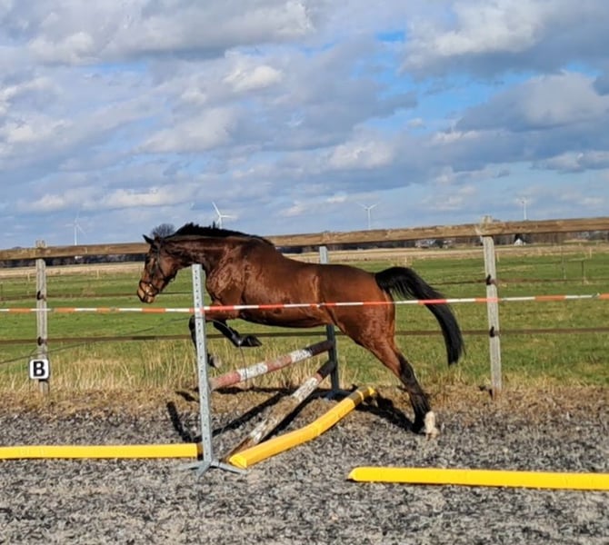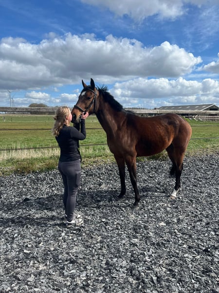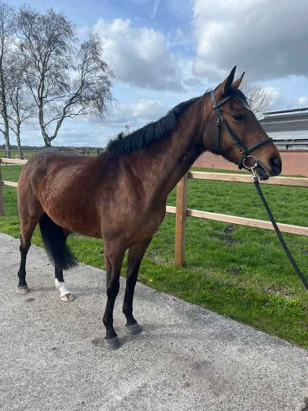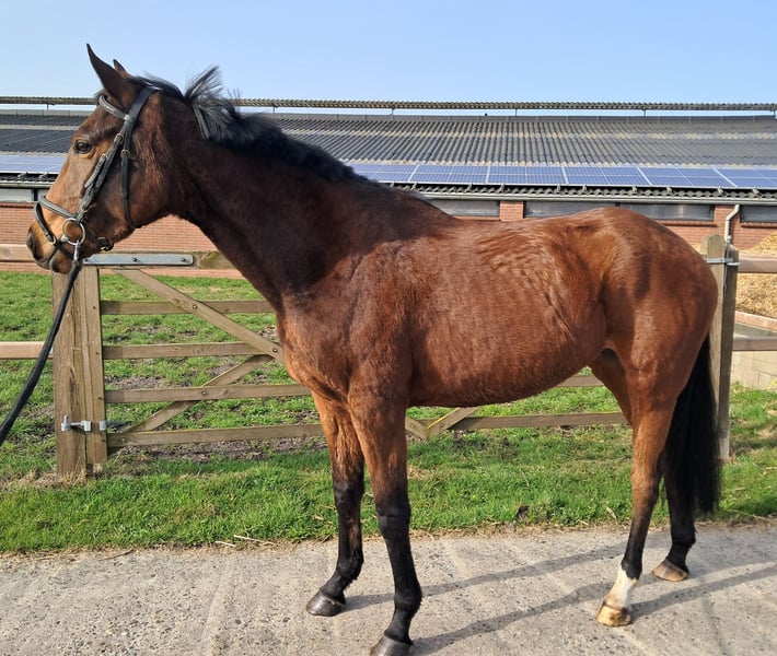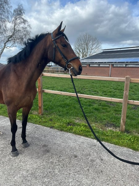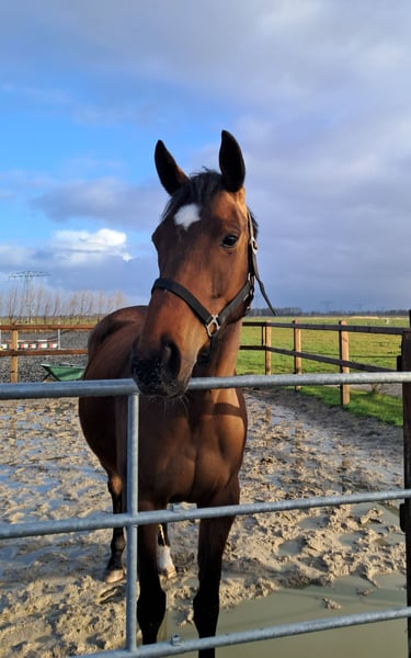 Vriendelijke sociale 5 jarige merrie te koop van 1,60. Afstamming niet bekend. Ze is braaf in de dagelijkse omgang ook bij de hoefsmid. Ze is recent naar de tandarts geweest, ook geënt en netjes ontwormd. Verder geen stalgebreken. Te koop wegens gezondheidsredenen ruiter. Het longeren is bij haar bekend en laat ook mooie sprongen los zien. Er is opgehangen maar verder niet opgepakt wegens gezondheidsredenen van de ruiter. Ze is gevoelig voor de spanning van de ruiter en daarom wordt er gezocht naar een ervaren iemand die dat verder wil gaan oppakken. Voor meer info graag appen of bellen met 0612875872