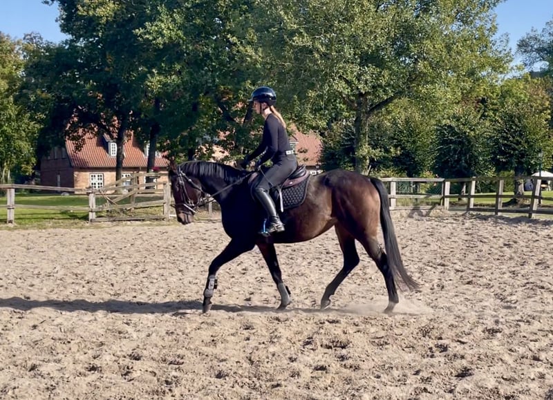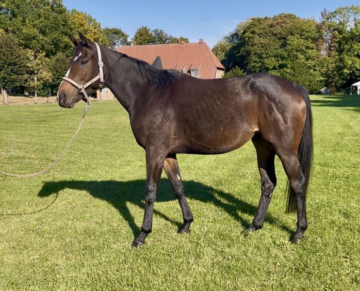 Verkaufen unsere 4 jährige irische Vollblut Stute. Motte ist ca 159cm groß Sie ist seit kurzem unter dem Sattel und meistert die bisherigen Aufgaben alle mit Bravour! Hat sogar schon die ersten Sprünge unter dem Sattel gemacht und zeigt sich dabei sehr ausgeglichen, deswegen können wir sie uns gut im Hunter Bereich vorstellen. Vollständig Influenza grundimmunisiert und entwurmt. Sie besticht durch ihr charmantes Auftreten. Bisher ist noch kein TÜV vorhanden, kann aber jederzeit auf Kosten des Käufers gemacht werden. Aufgrund ihres Ausbildungsstandes bisher noch kein Anfängerpferd, daher Probereiten auch nur durch Jungpferdeerprobte Reiter möglich! Preis steigt mit weiterer Ausbildung Probereiten berechnen wir mit 20€ Alles Weitere ausschließlich Telefonisch! (Falls ich nicht ans Telefon gehe, gern eine Nachricht auf dem Anrufbeantworter hinterlassen- rufe sobald ich Zeit habe zurück!!) Larissa Bever 015756176969