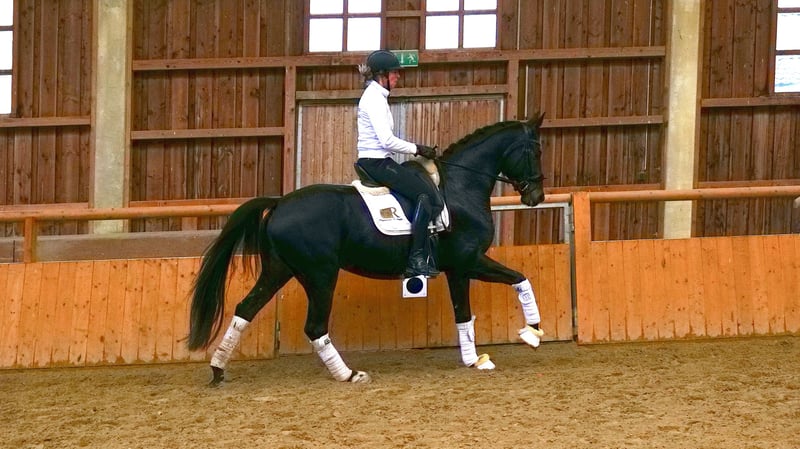 Incredibly sweet and exceptionally comfortable mare, a true delight to handle. She is always eager to perform and, considering her age, remarkably well-behaved and cooperative. A rare and pleasant combination, making her difficult to find. Highly recommended even for amateurs seeking a particularly light-footed young talent. A recent TÜV inspection is available. For more information or to arrange a trial ride, please feel free to contact us at any time by phone at 0172-5330585.
